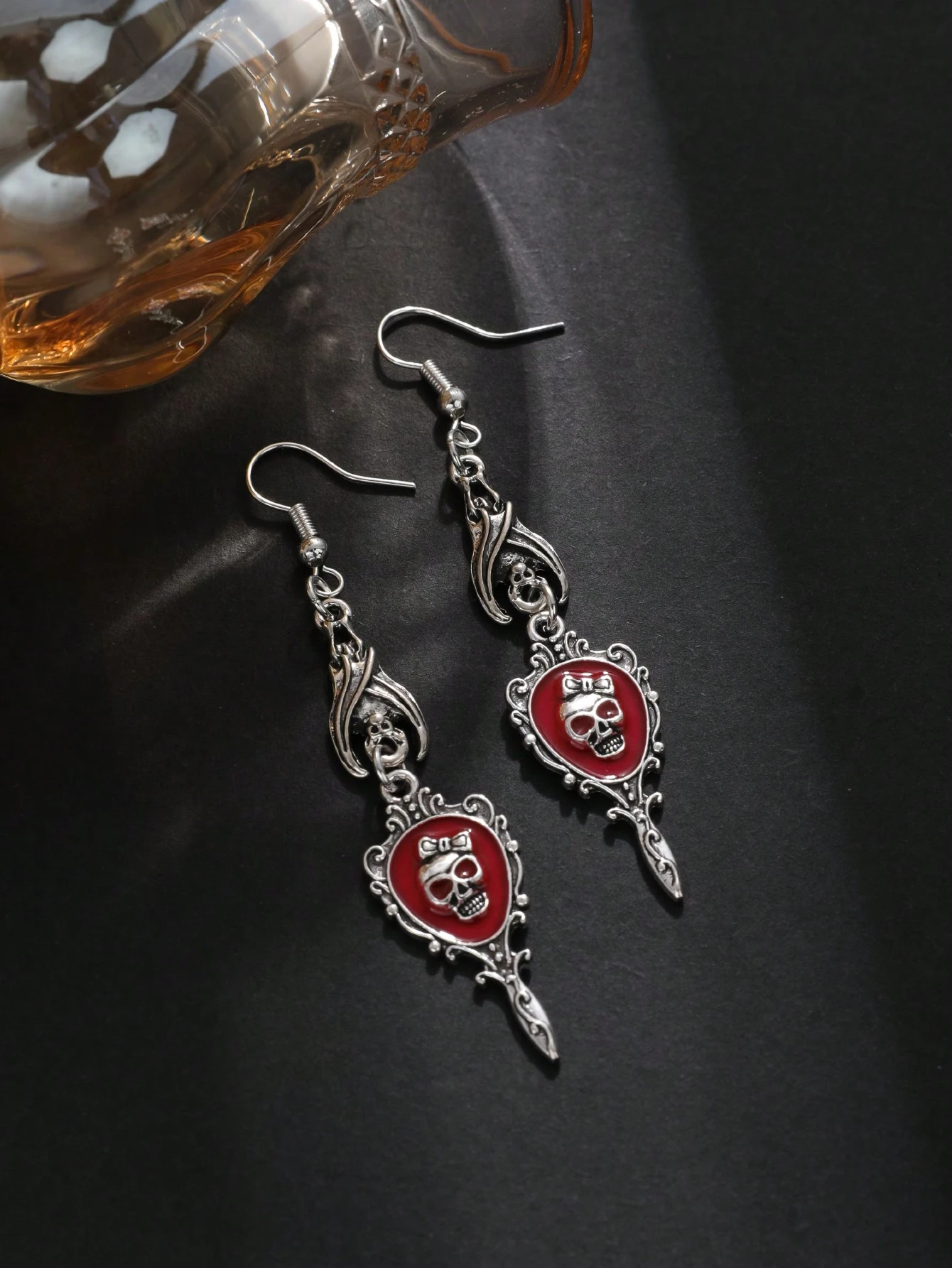 Grunge Punk 1pair Gothic Dark Bat & Skull Heads & Magic Mirror Dangle Earrings