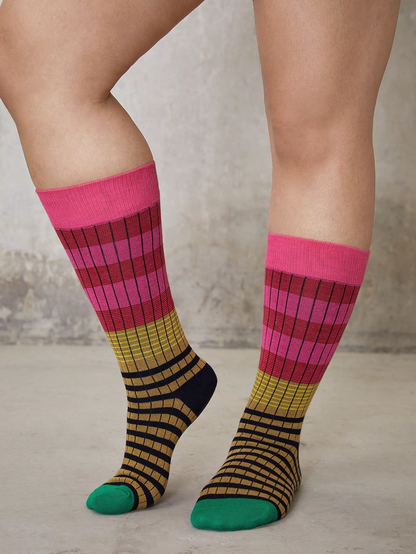 Grunge Punk 1pair Women Striped Pattern Over The Calf Socks