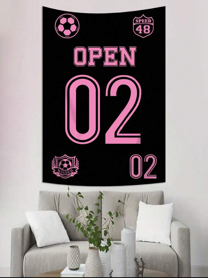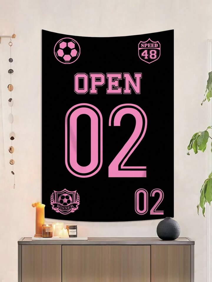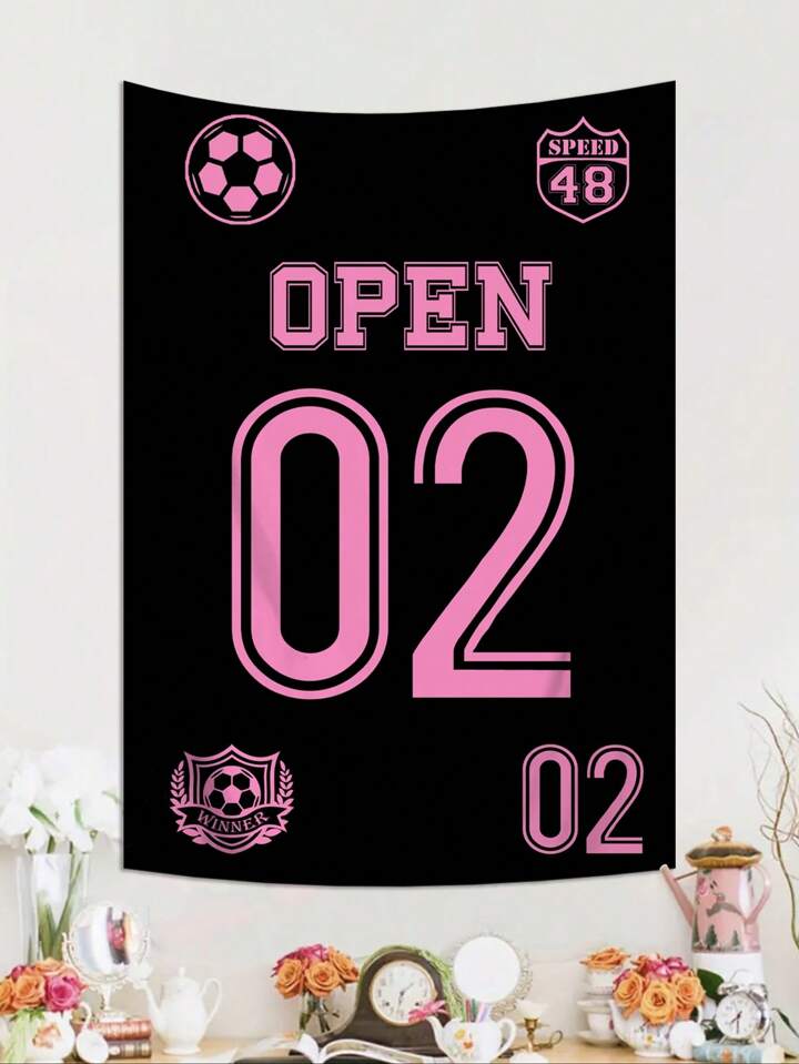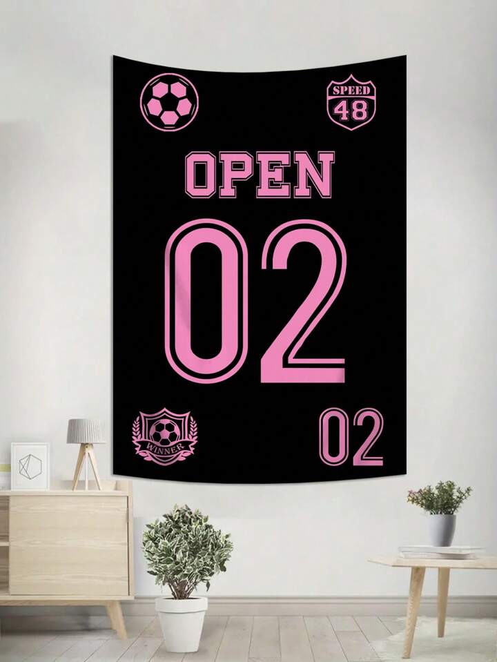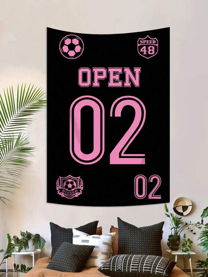 Grunge Punk 1pc Black Jersey Number Pattern Hanging Wall Tapestry, Suitable For Living Room And Bedroom