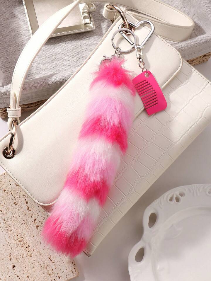 Grunge Punk 1pc Chic And Cute Elegant Pink Mini Comb, Multi-Layer Faux Animal Tail Heart Shaped DIY Keychain & Bag Charm, Versatile Fashion Accessory Suitable For Girls Daily Wear, Holiday Gift