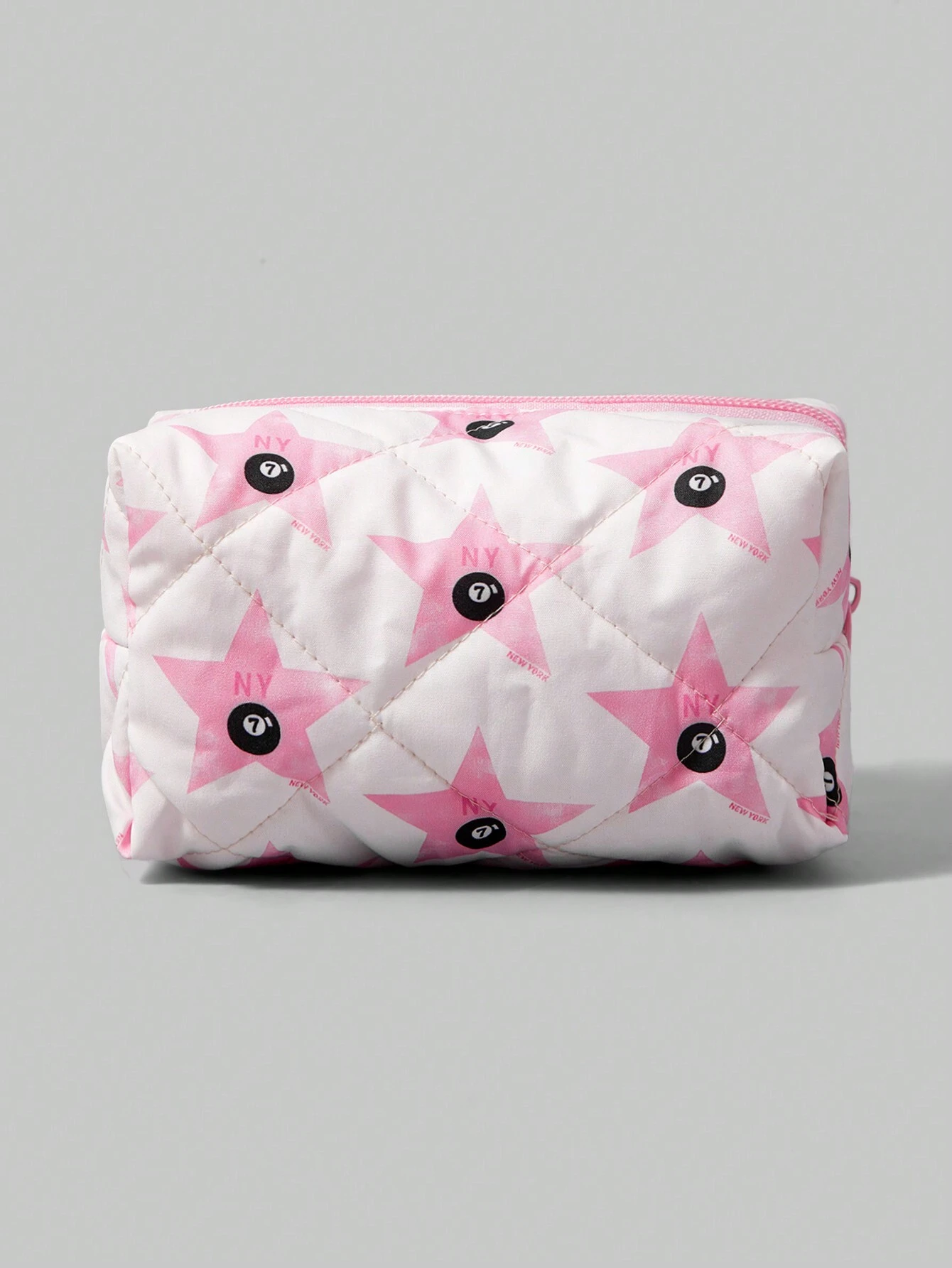 Grunge Punk 1pc Cute Minimalist 8-Ball Graphic Structured Cosmetic Bag, Travel Toiletry Organizer, Portable Makeup Storage Pouch
