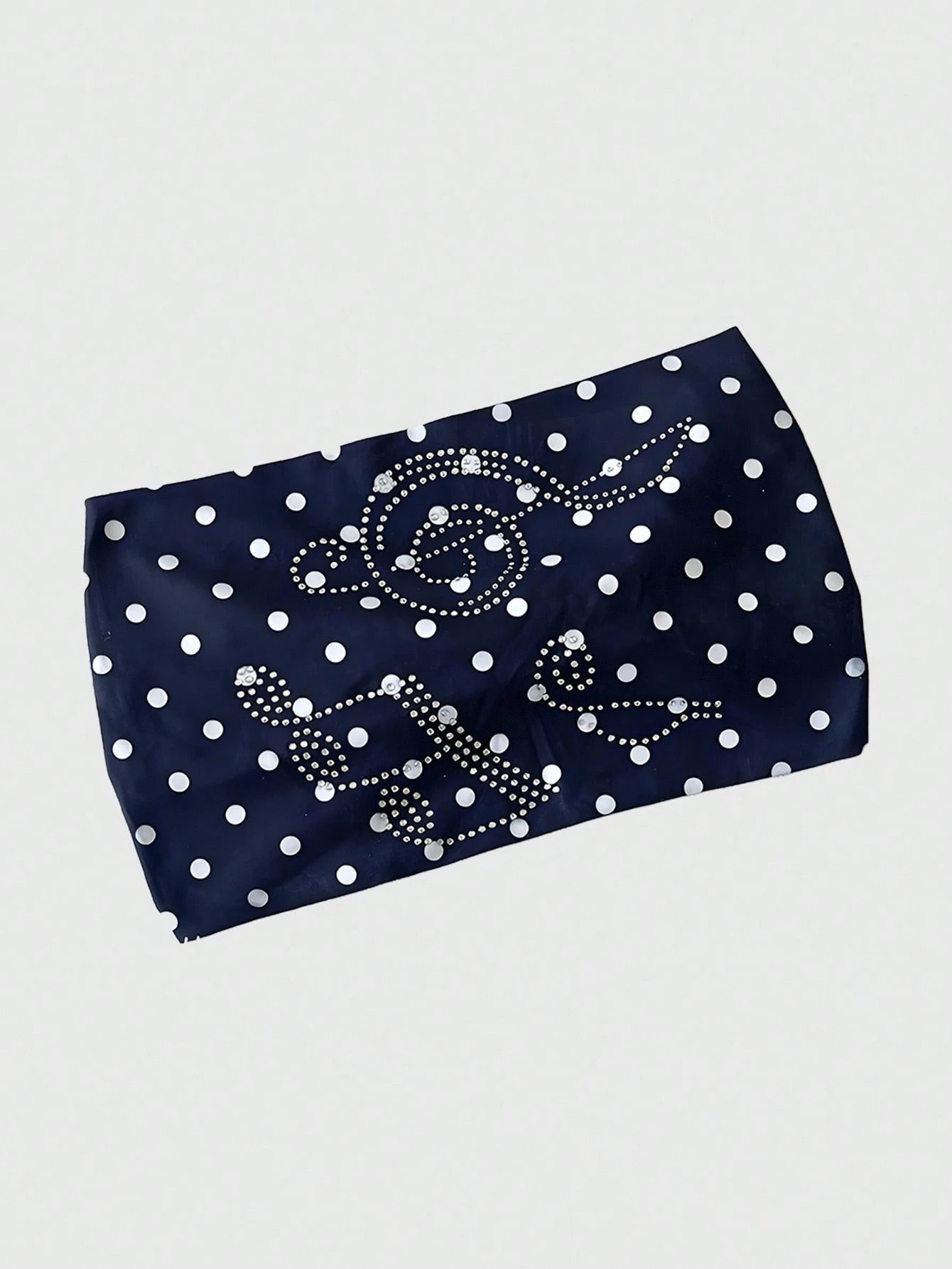 Grunge Punk 1pc Cute White Polka Dot Headband, Y2K Style Musical Note Rhinestone Black Hair Band, Fashionable Versatile Hair Accessory For Daily Wear