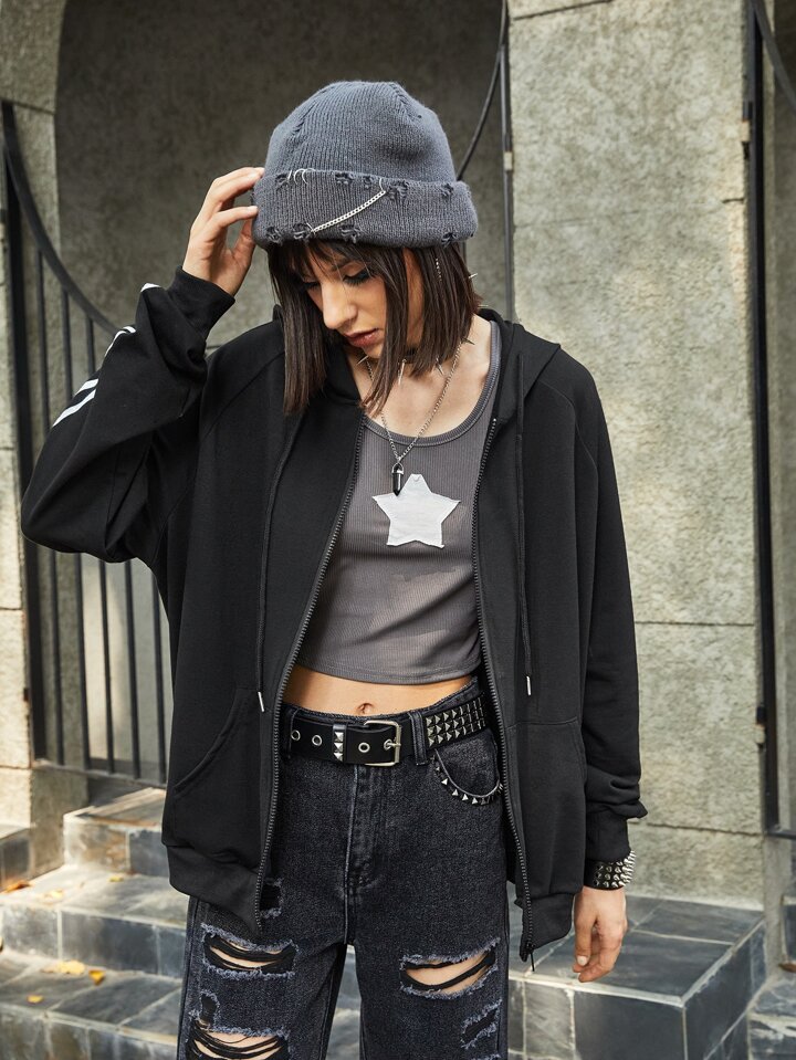 Grunge Punk 1pc Drop Shoulder Skeleton Print Drawstring Hoodie, School