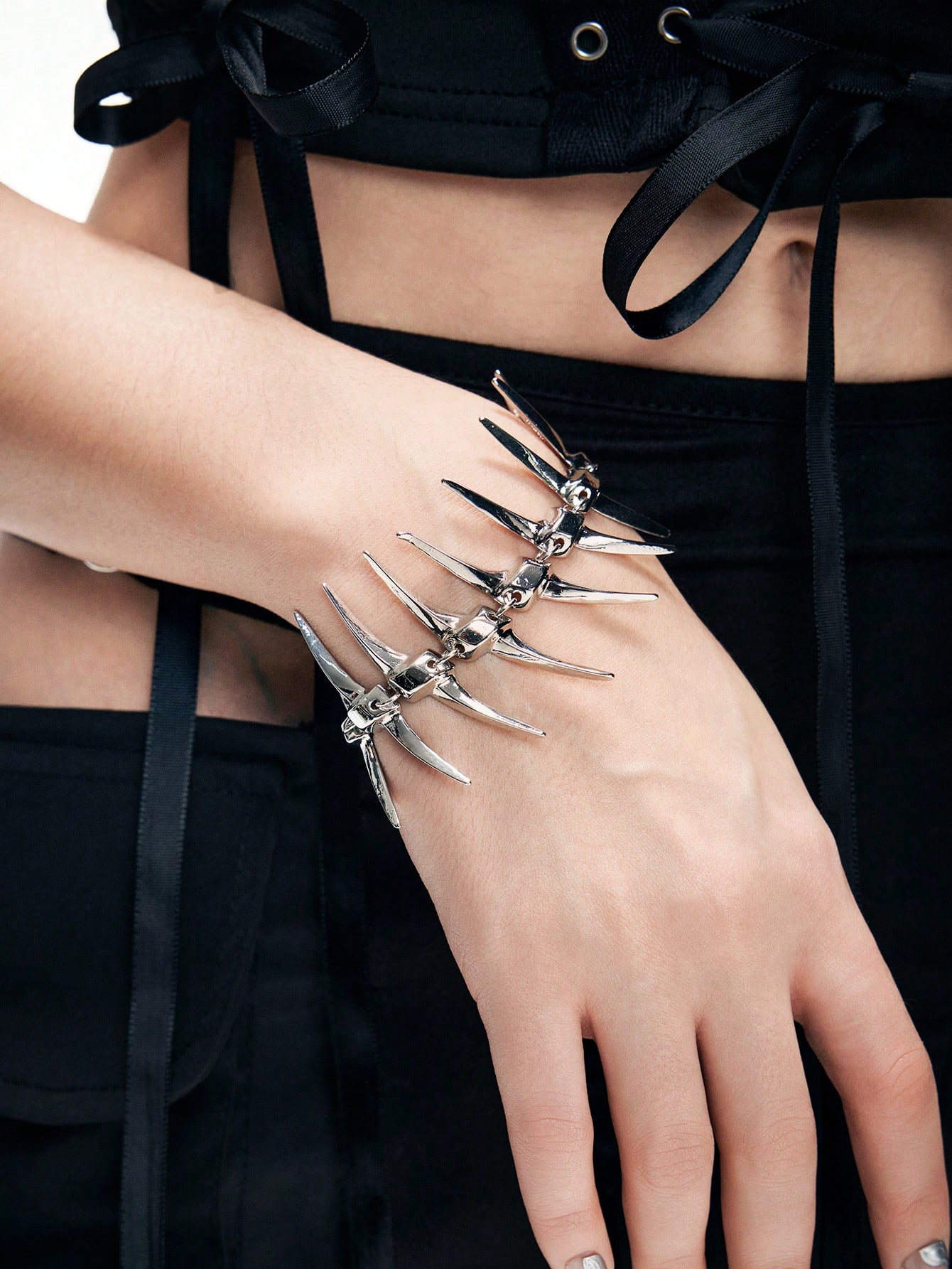 Grunge Punk 1pc Exaggerated Silver Thorn Spine Fish Bone Bracelet, Punk Couple Bracelet, European And American Style
