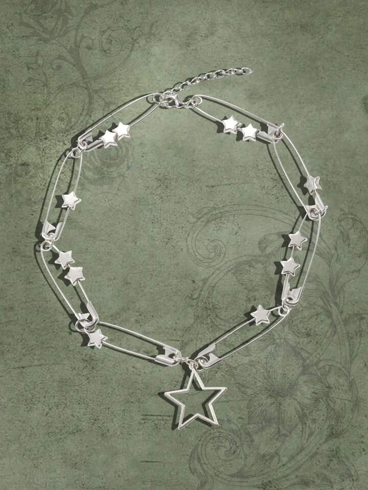 Grunge Punk 1pc Fashion Copper Alloy Star Decor Chain Necklace For Women For Daily Decoration