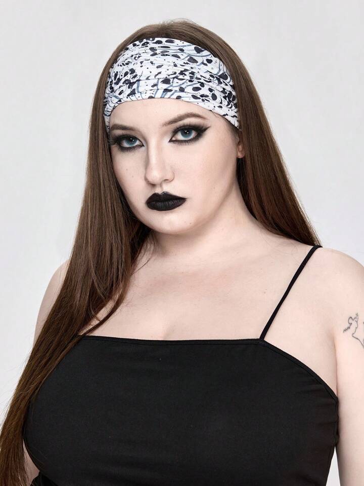 Grunge Punk 1pc Fashion Double Laser Glitter & Rhinestone Decor Wide Hairband, Lolita/Gyaru Style Leopard Print Elastic Headband, Casual Accessories