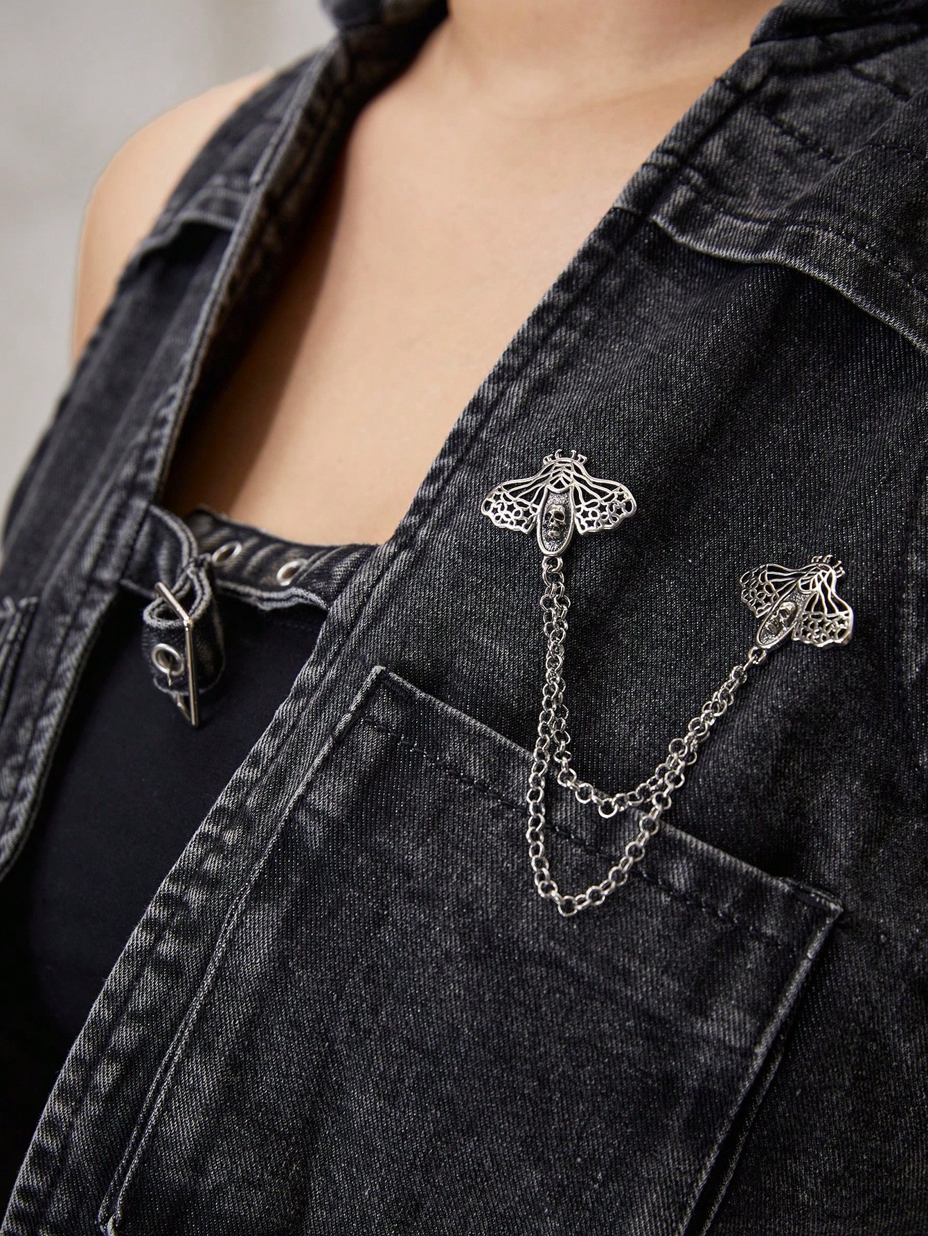 Grunge Punk 1pc Fashion Zinc Alloy Butterfly & Skull Decor Brooch For Women For Daily Decoration