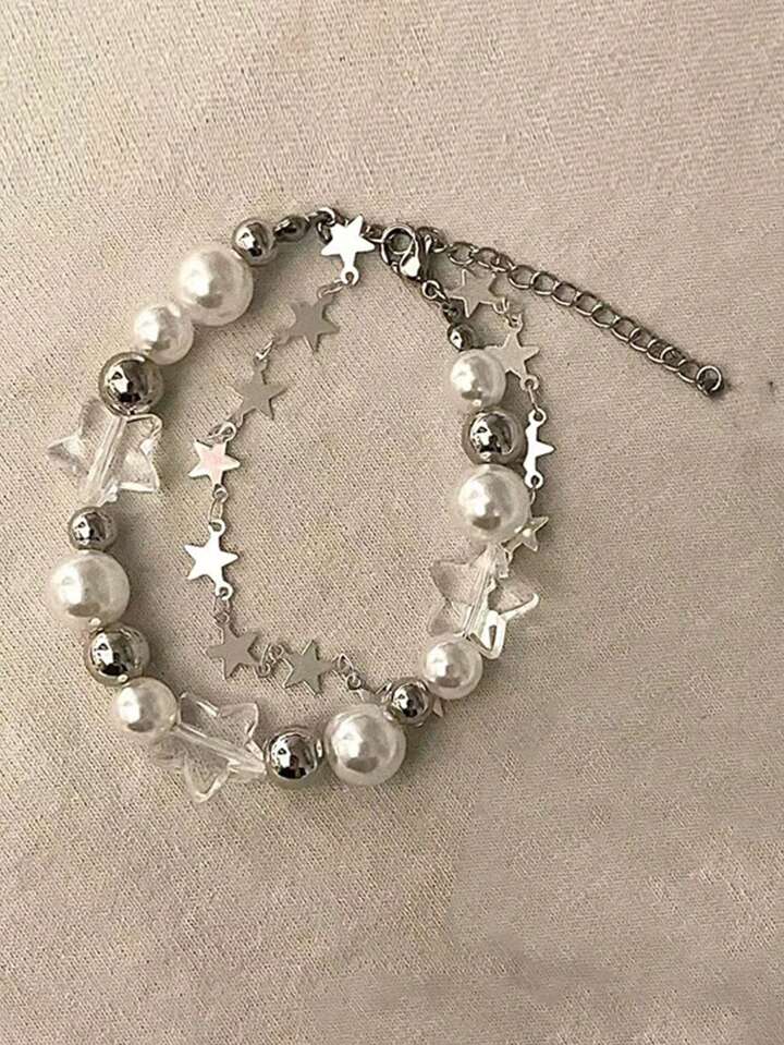 Grunge Punk 1pc Fashion Zinc Alloy Star & Faux Pearls Decor Bracelet For Women For Daily Decoration