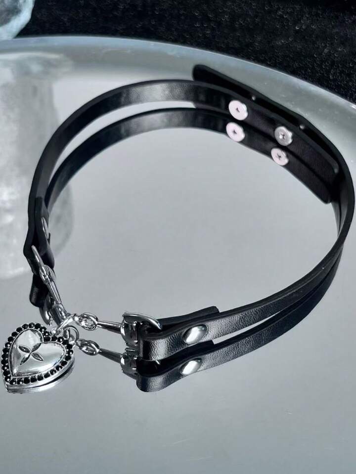 Grunge Punk 1pc Fashionable Heart Leather Necklace For Women, Minimalist & Casual For Everyday Wear