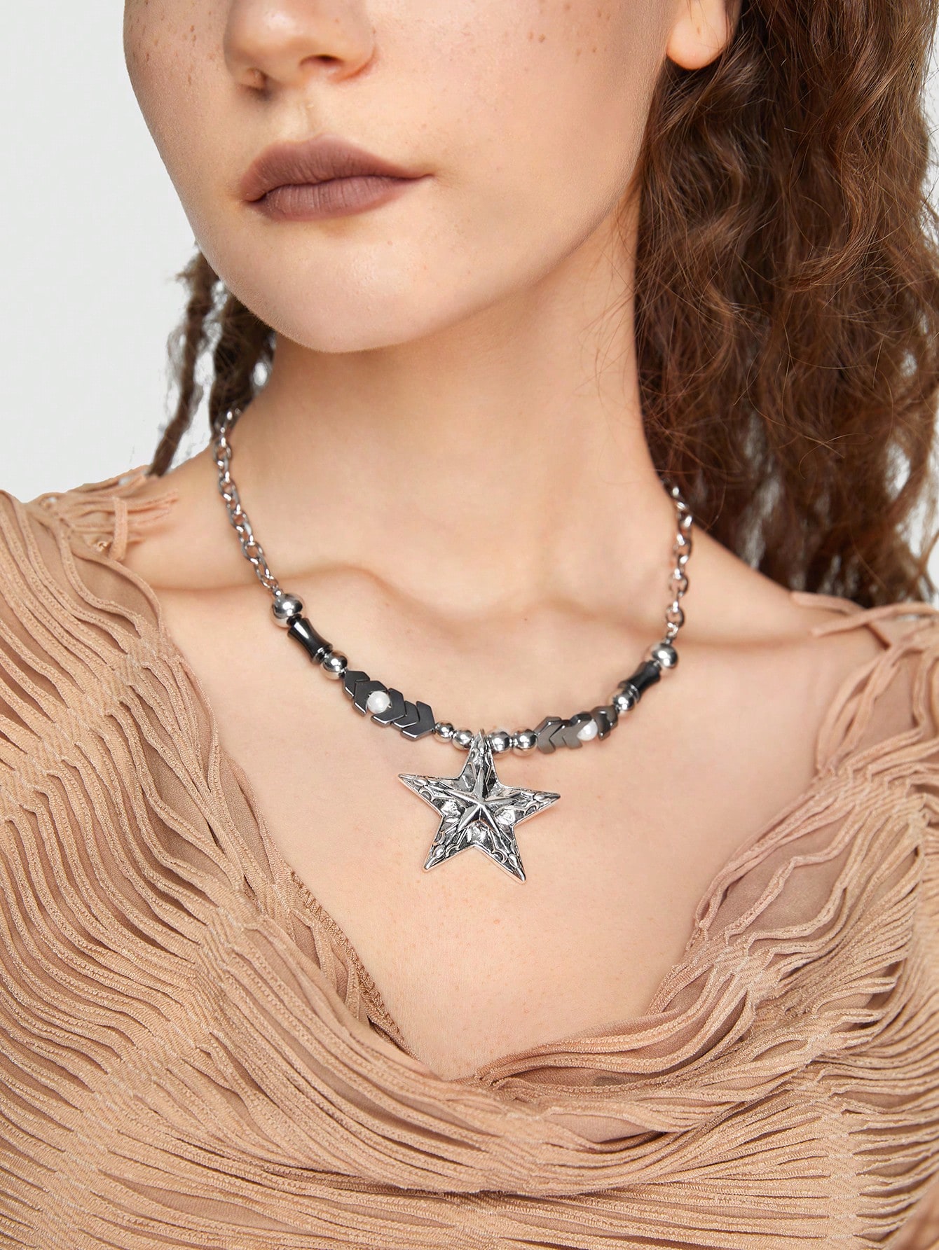 Grunge Punk 1pc Fashionable Versatile Star Shaped Pendant Necklace