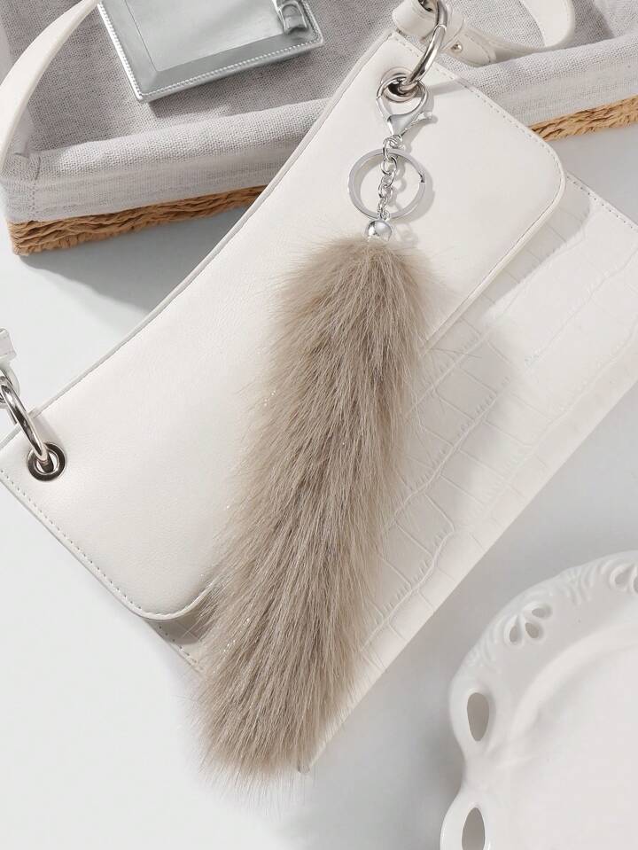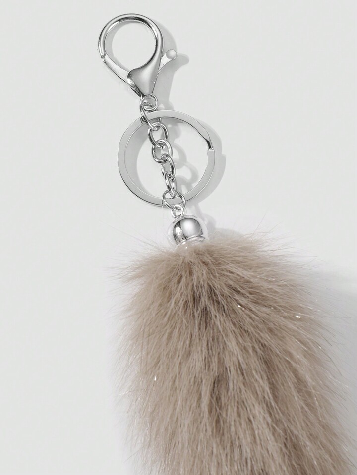 Grunge Punk 1pc Fashionable Vintage High-Quality Brown Glitter Faux Fur Animal Tail Keychain & Keyring, Versatile Accessory For Women, Ideal Gift
