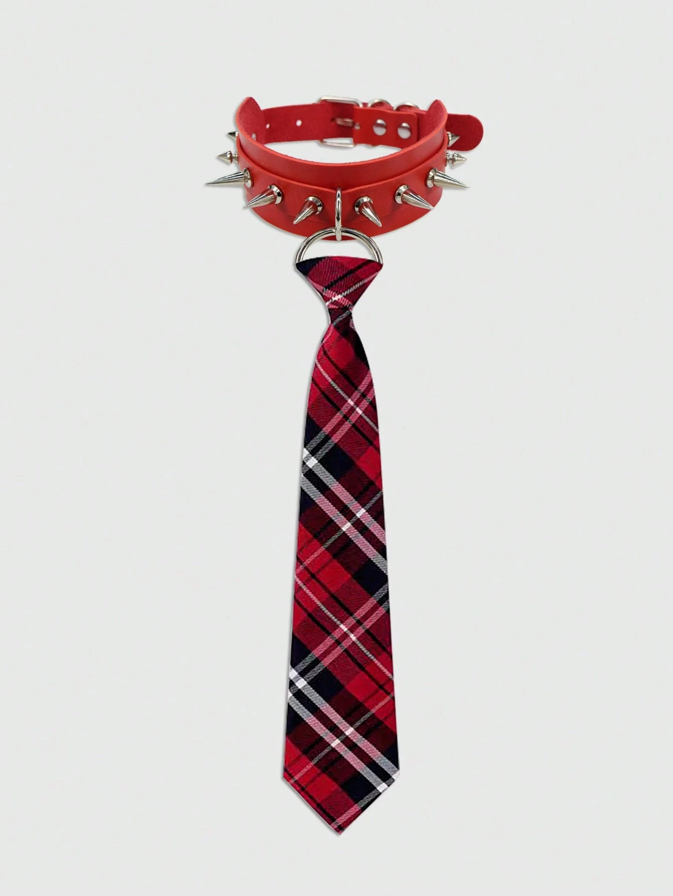 Grunge Punk 1pc Gothic Punk Rivet Decorated Women Neck Tie, Subcultural Fashion Accessory