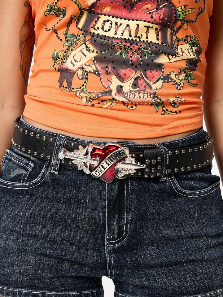 Grunge Punk 1pc Heart Shaped Buckle Personalized Punk Style Belt For Women, Fashion Accessory
