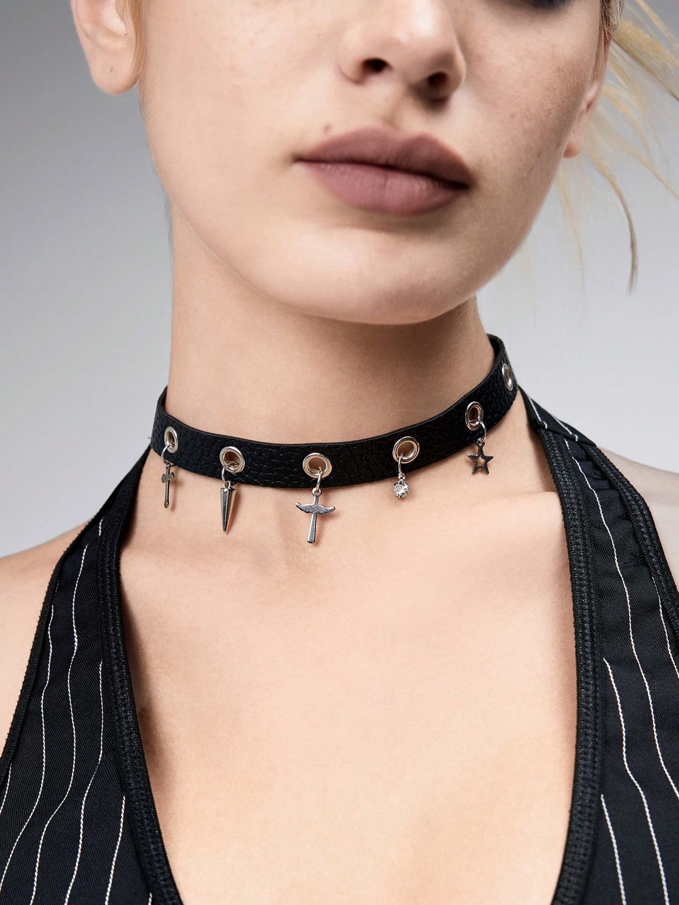 Grunge Punk 1pc Multiply Pendant Choker Necklace, Personalized Deluxe Collar Necklace