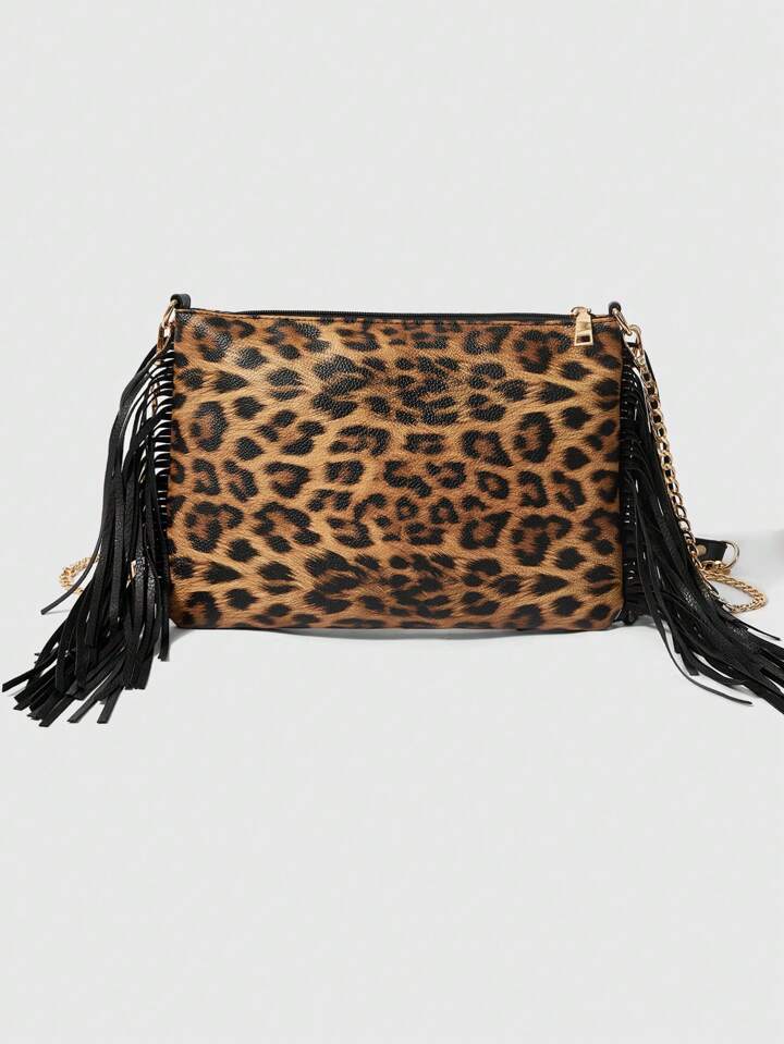 Grunge Punk 1pc Punk Dark Leopard Print Women Shoulder Bag