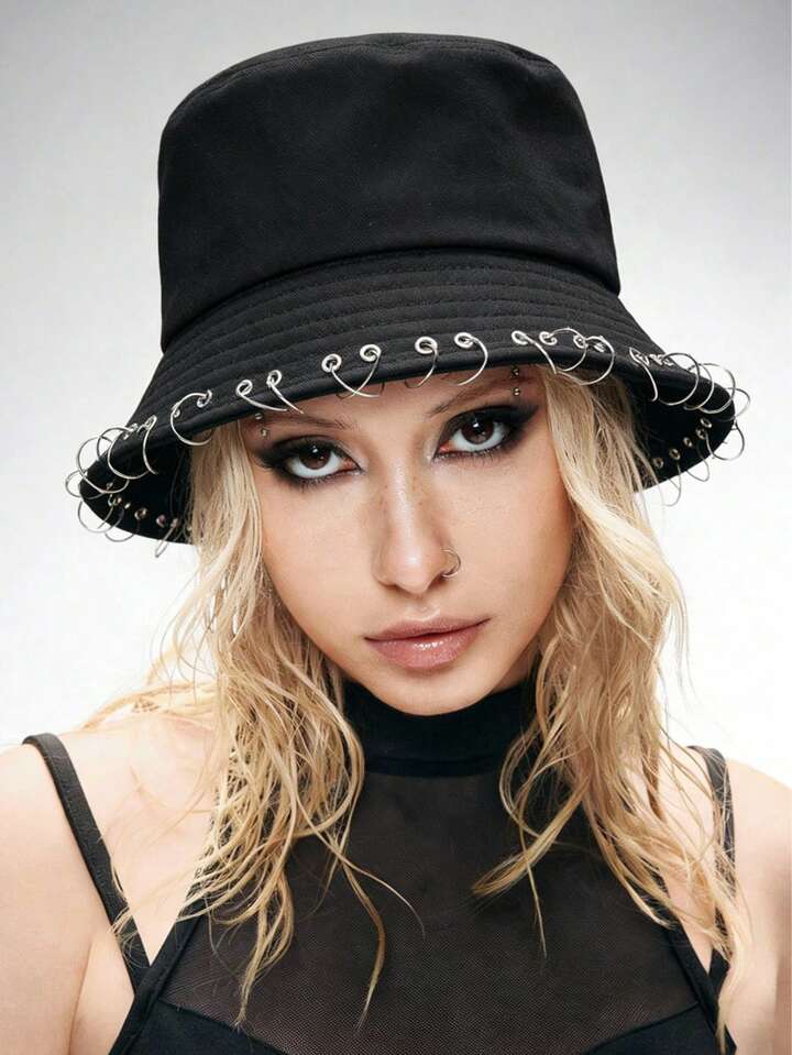 Grunge Punk 1pc Punk Style Circular Hollow Hat, Y2K Round Pendant Newsboy Cap, Daily Personalized Fashion Item