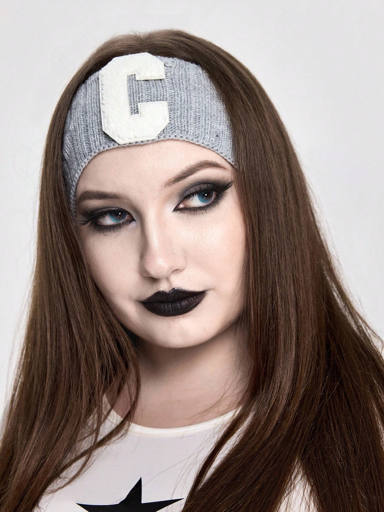 Grunge Punk 1pc Punk Style Distressed Headband With Minimalist English Letter Pattern, Casual Personal Style Accessory