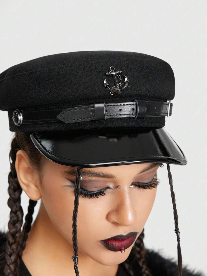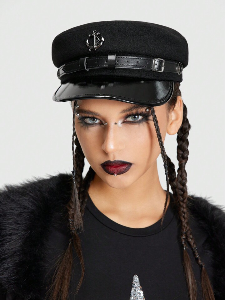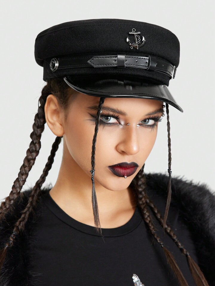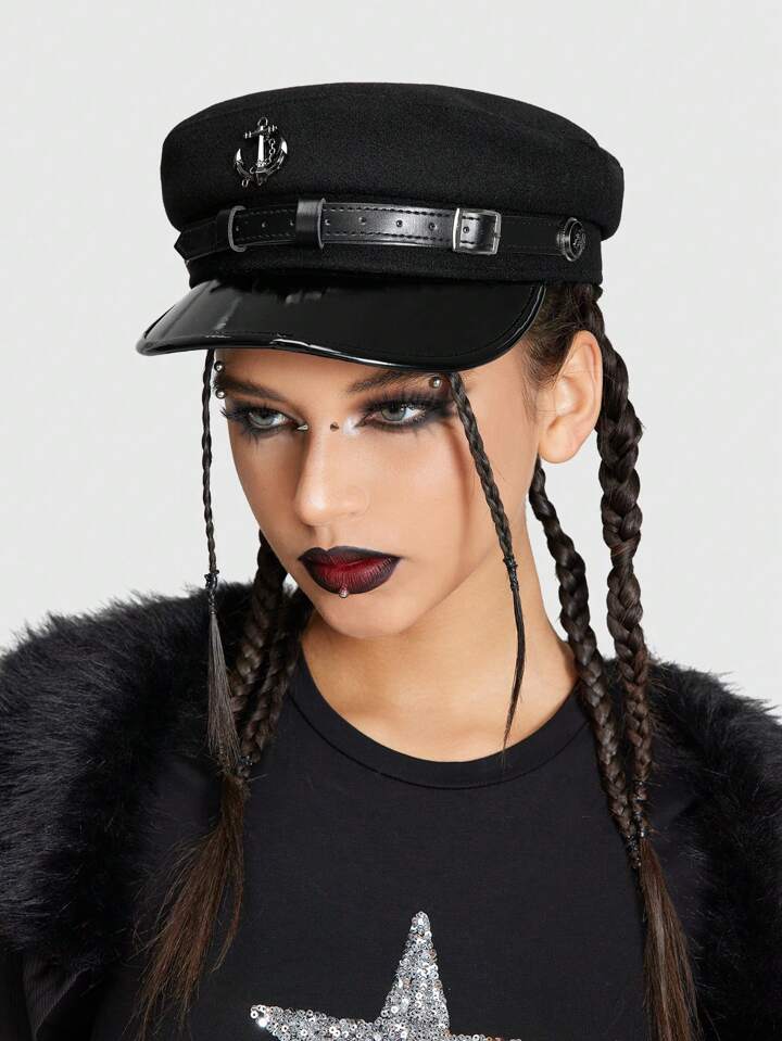 Grunge Punk 1pc Punk Style Navy Beret Hat