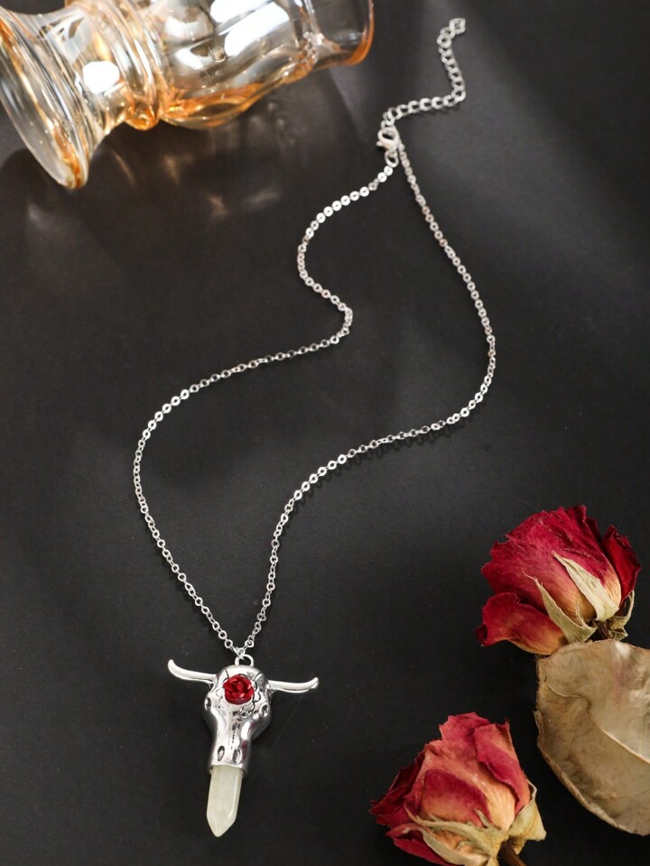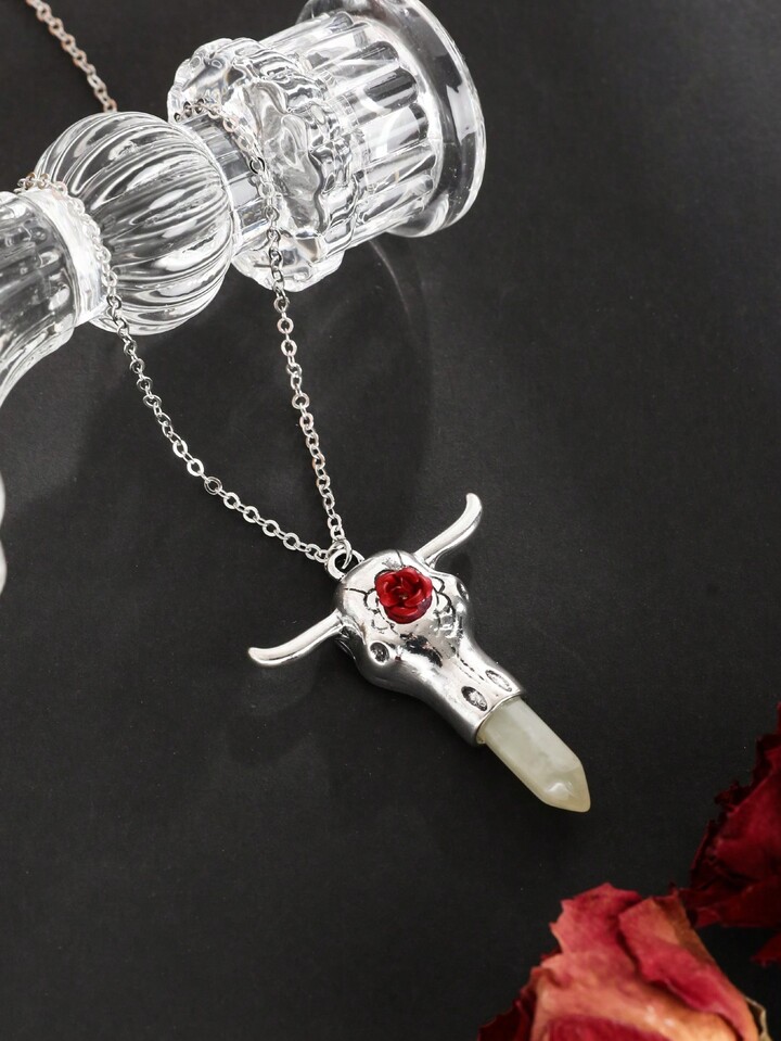 Grunge Punk 1pc Punk Style Rose Flower & Ox Head Shaped Exaggerated Pendant Necklace