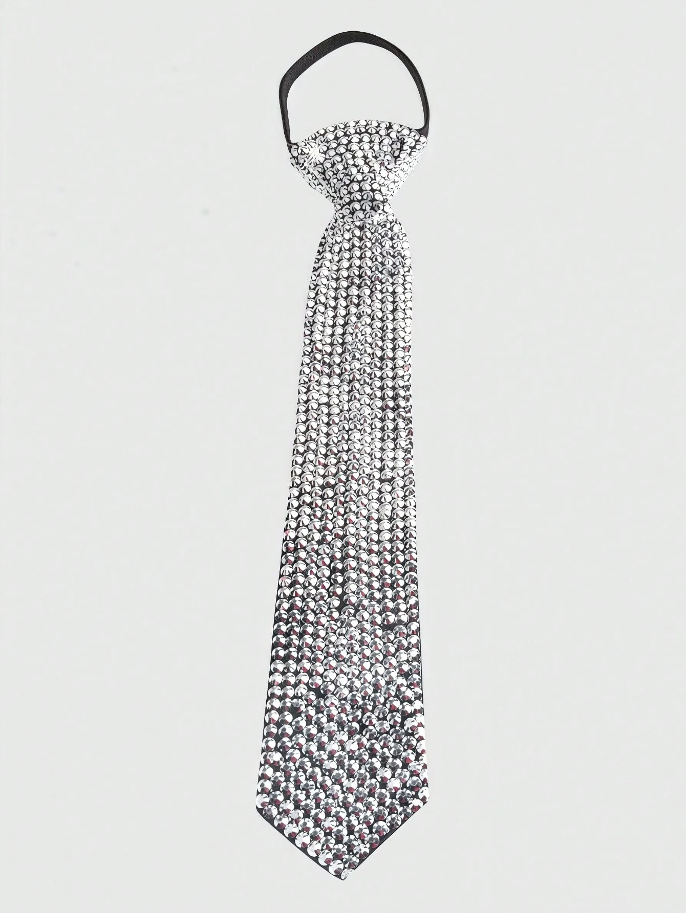 Grunge Punk 1pc Punk Y2K Style Adjustable Silver Crystal Necktie, Metallic Rock Street Fashion Accessory For Women