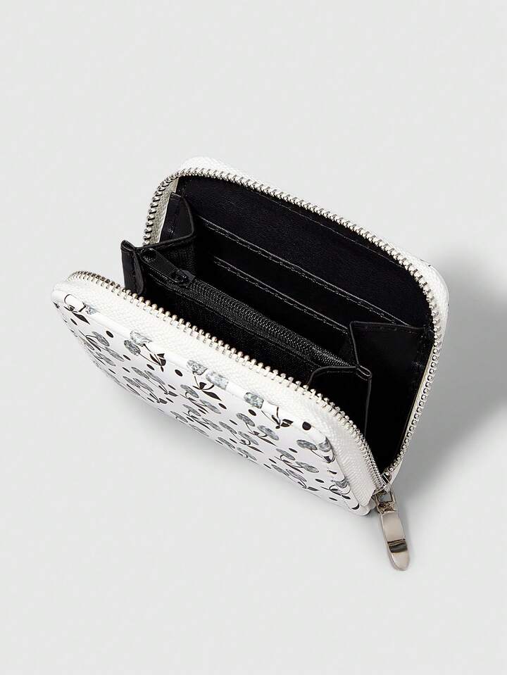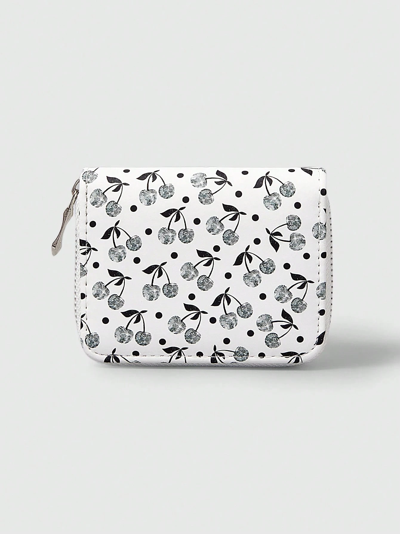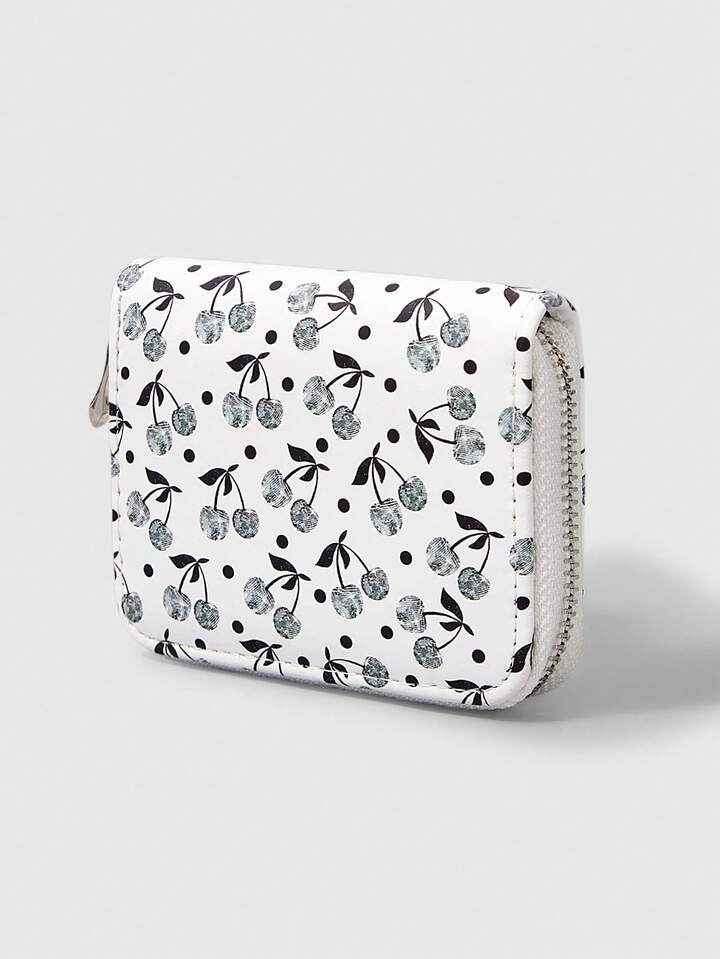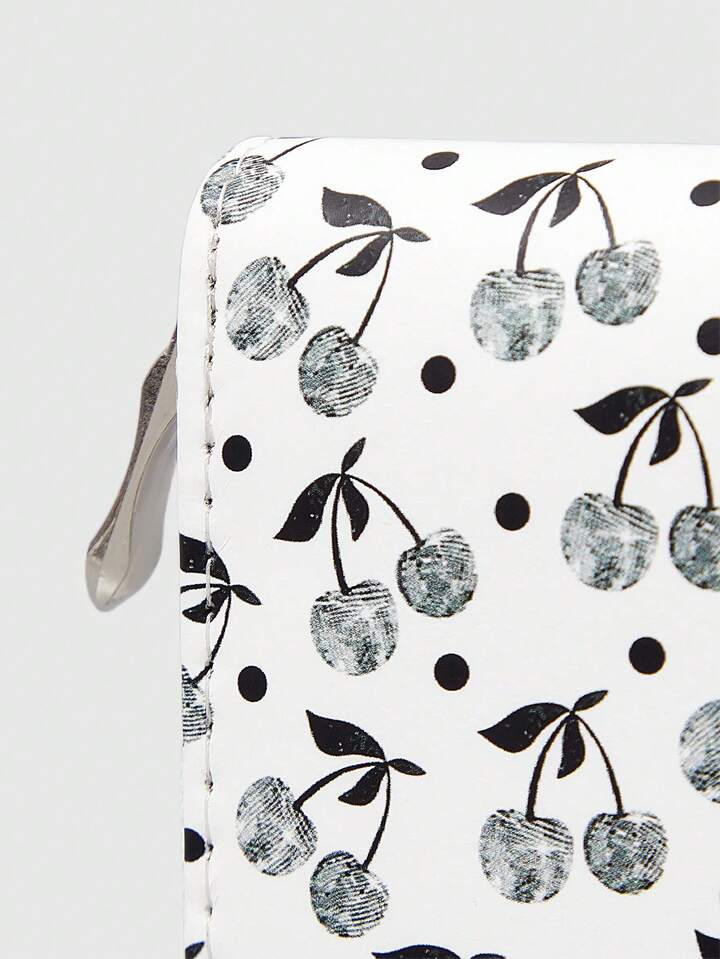 Grunge Punk 1pc Silver Studded Cherry Design Compact Zipper Wallet, Simple Style For Women