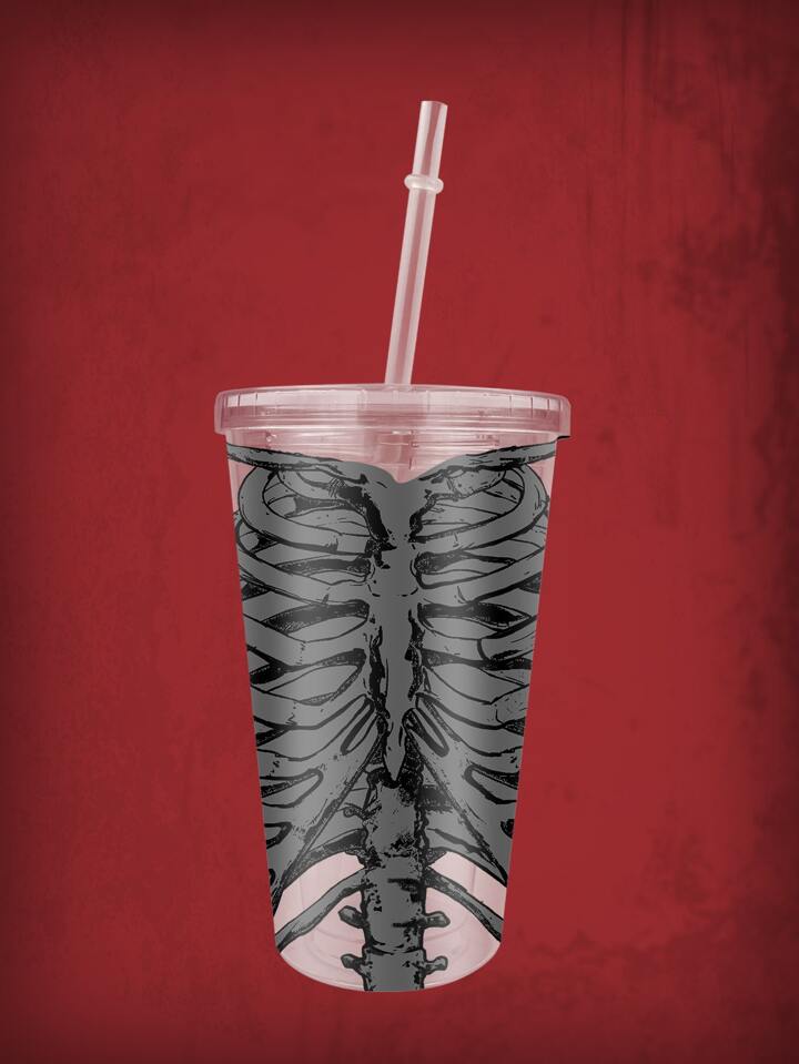 Grunge Punk 1pc Skeleton Print Tumbler, Modern PS Skull Print Bottle With Lid For School, Office