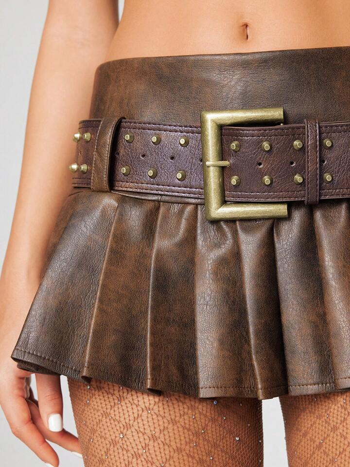 Grunge Punk 1pc Studded Bucket Punk Belt, Vintage Versatile Wide Leather Belt With Double Pin Buckle