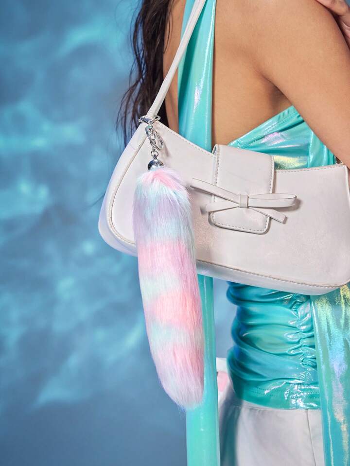 Grunge Punk 1pc Sweet Girl Ins Style Refined Versatile Fresh Dopamine Colorful Faux Fur Animal Tail Keychain, Suitable For Women Daily Wear, Holiday Gift