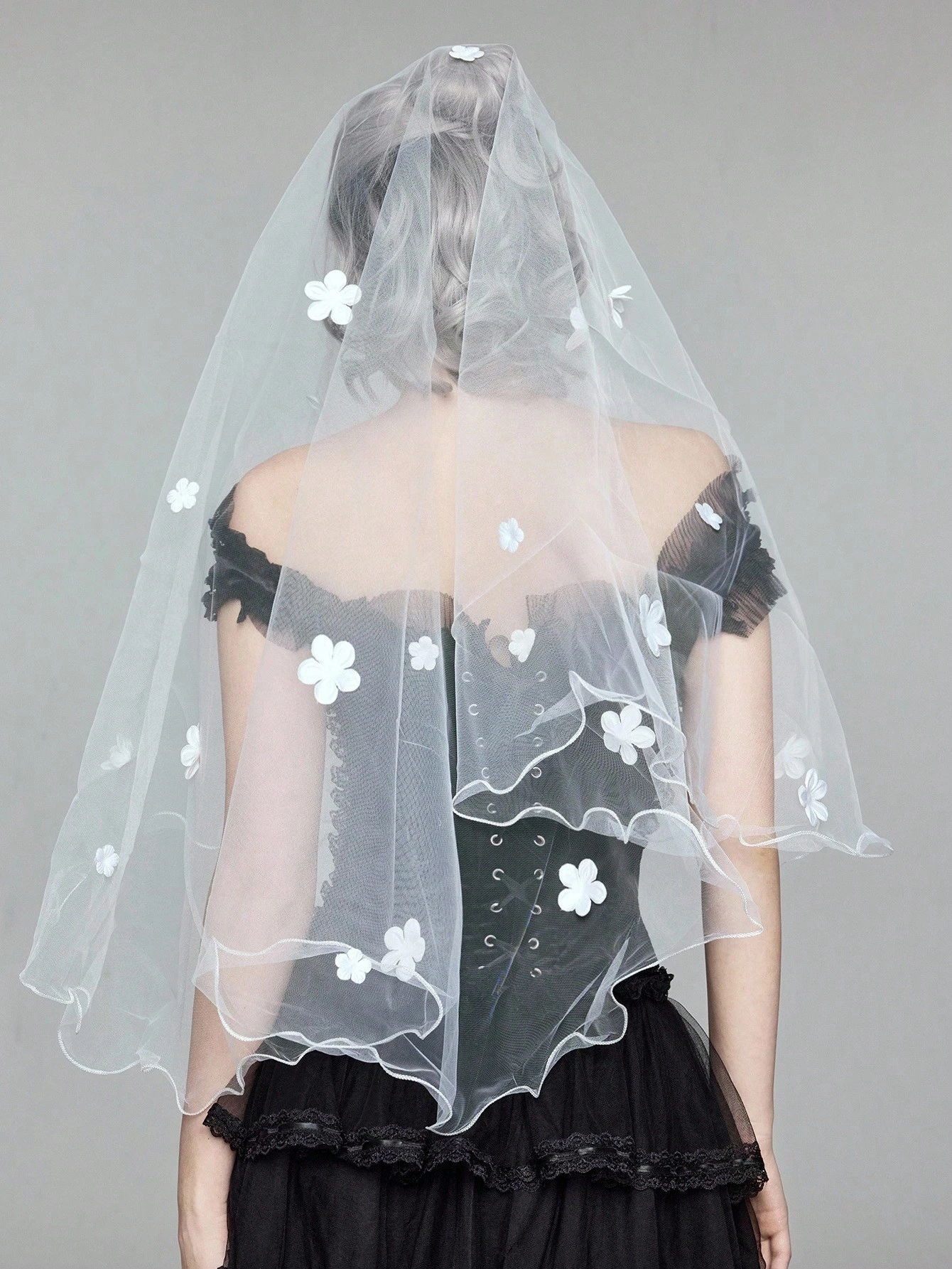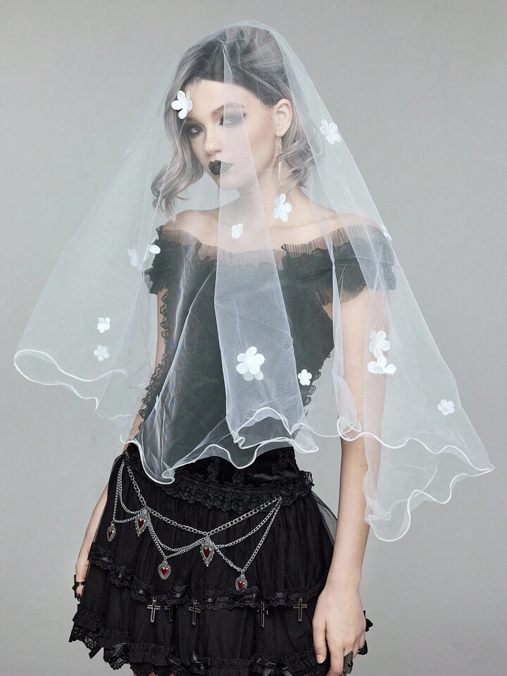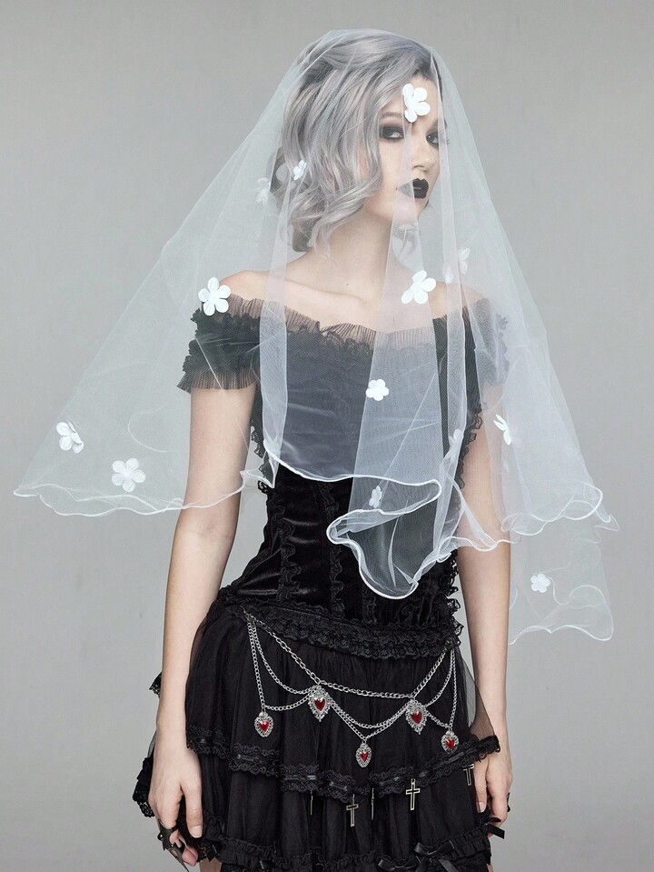 Grunge Punk 1pc White Floral Ruffled Bridal Veil
