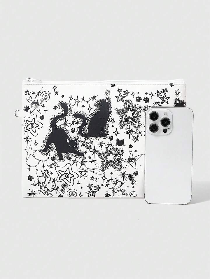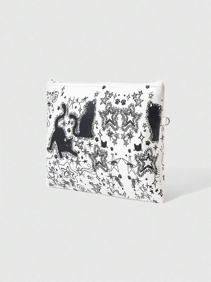 Grunge Punk 1pc White Handpainted Cat Women Clutch Bag
