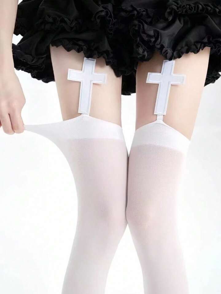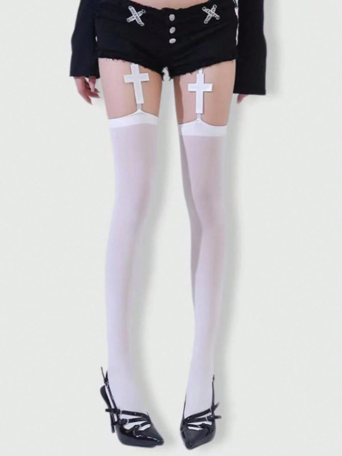 Grunge Punk 1pc White Sexy Suspender Pantyhose, Women Tights/Stockings/Leggings