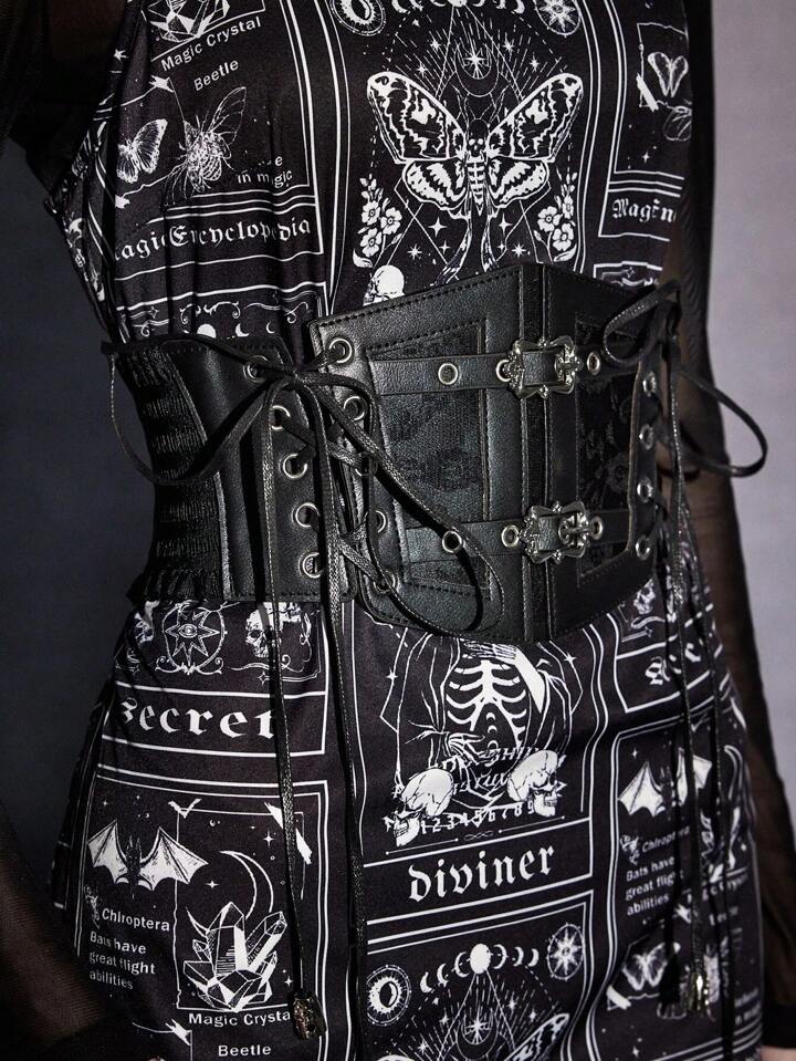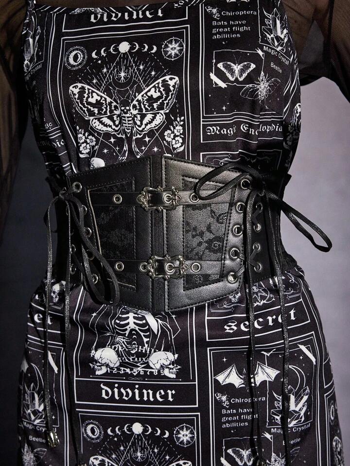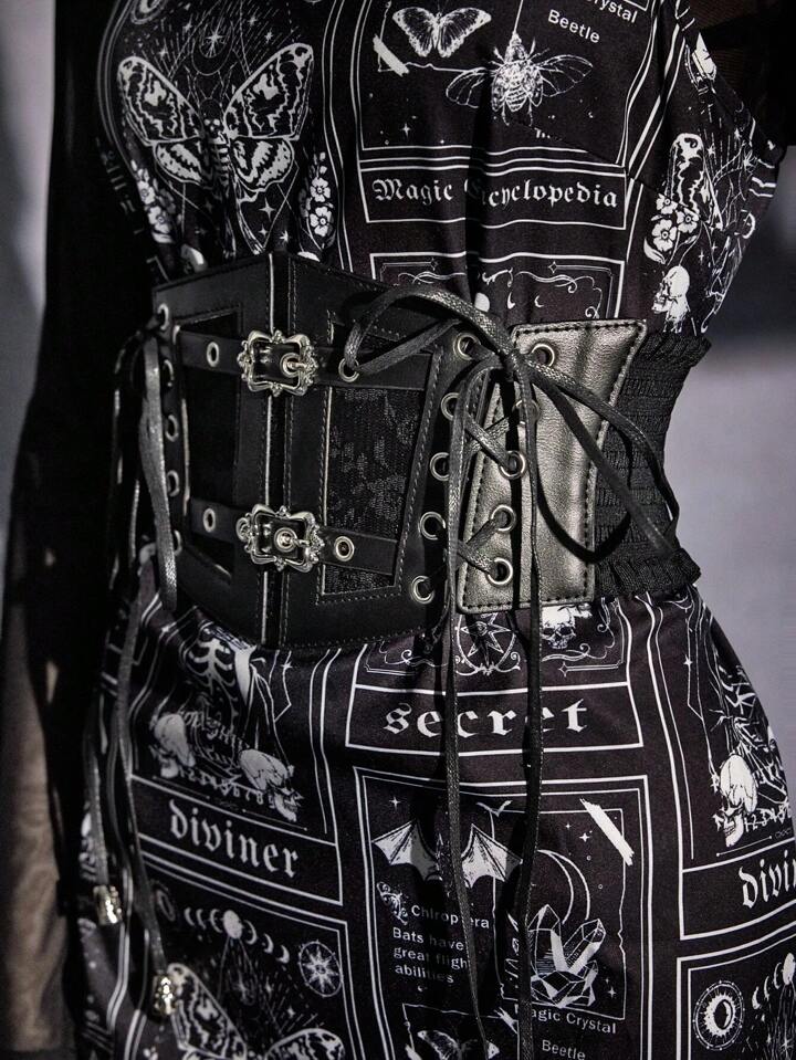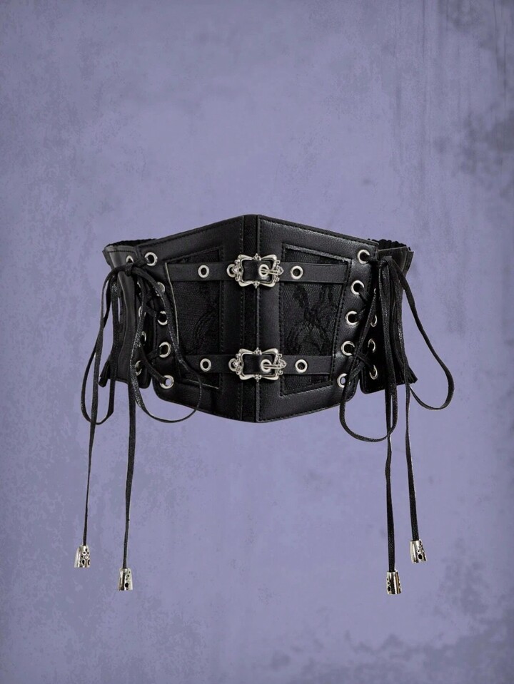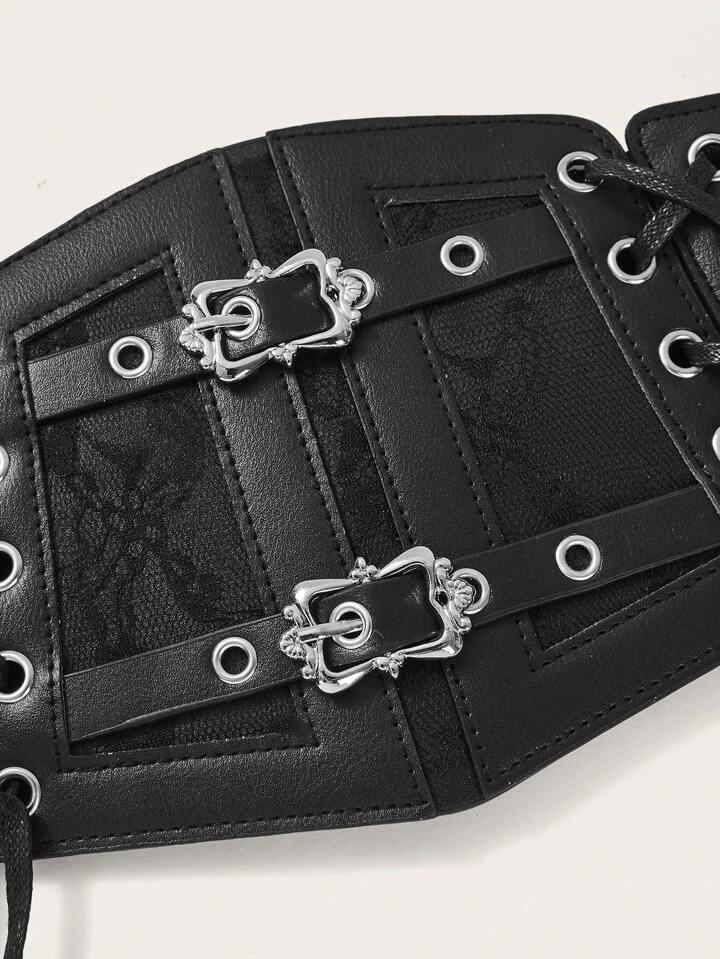 Grunge Punk 1pc Women Metal Buckle Decor Contrast Lace Corset Belt
