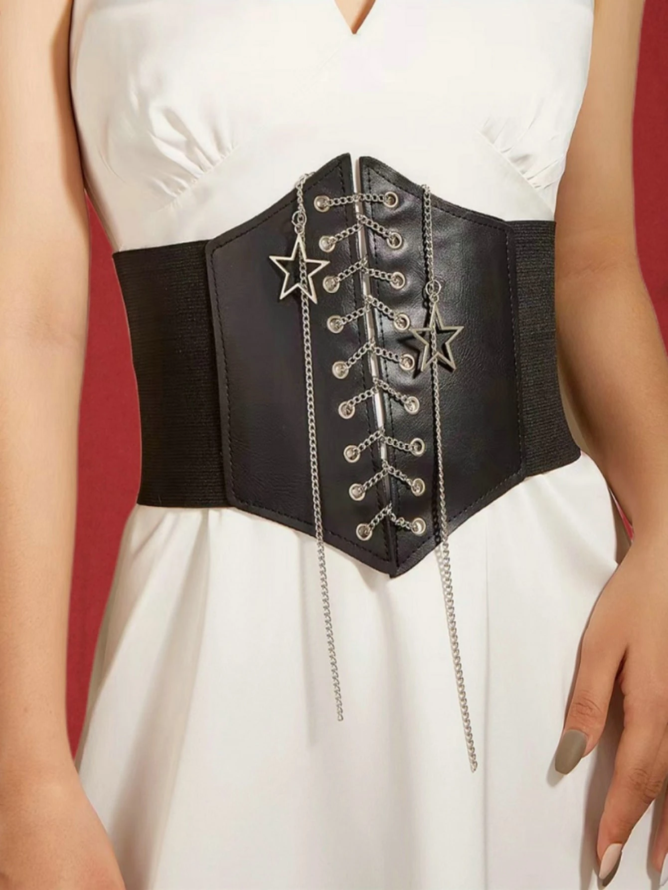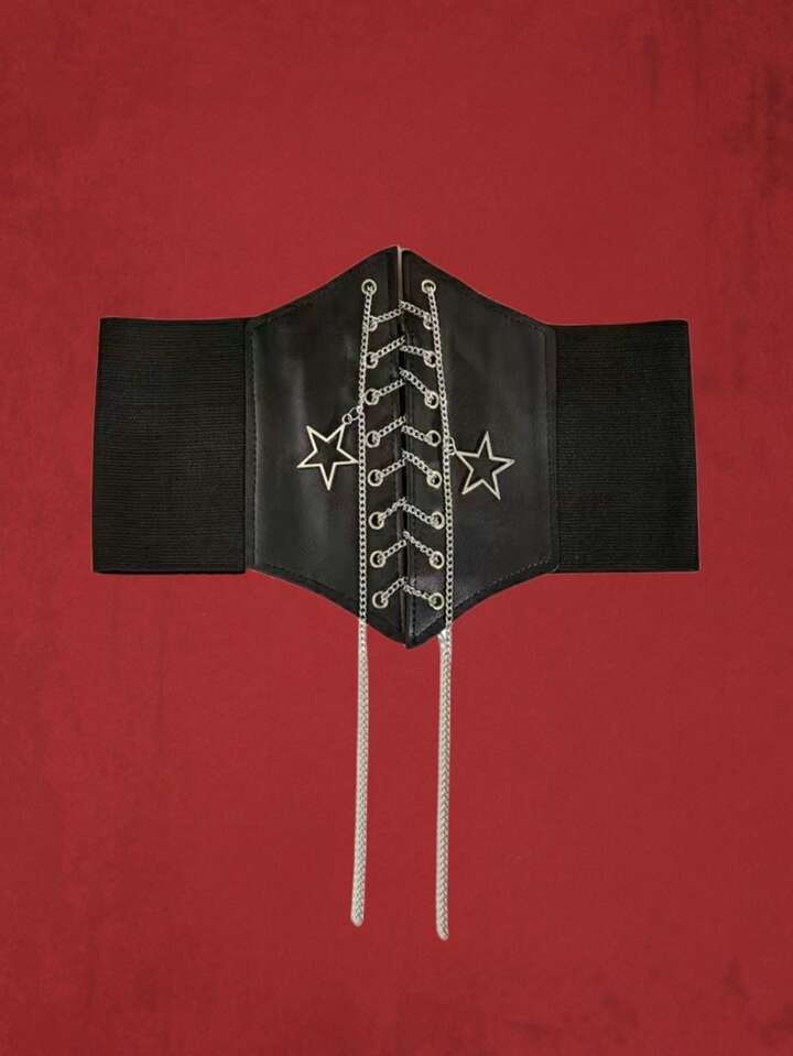 Grunge Punk 1pc Women Star Decor Lace Up Front Fashion Corset Belt For Dress Decoration