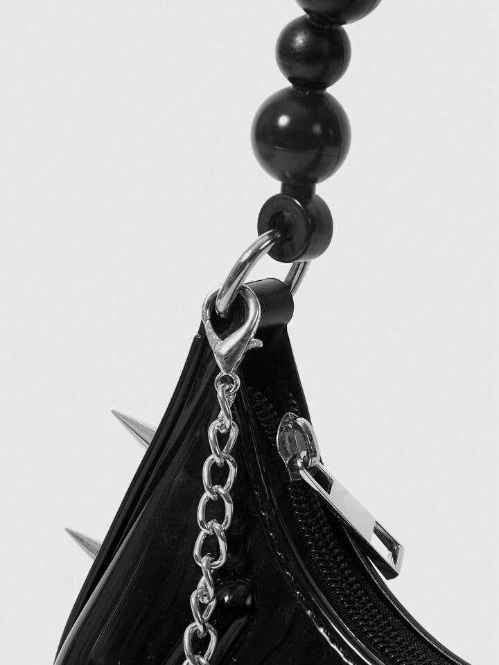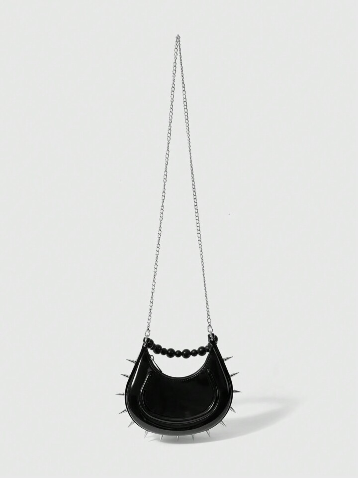 Grunge Punk 1pc Women's Punk Studded Spike Handbag Chain Shoulder Crossbody Jelly Bag