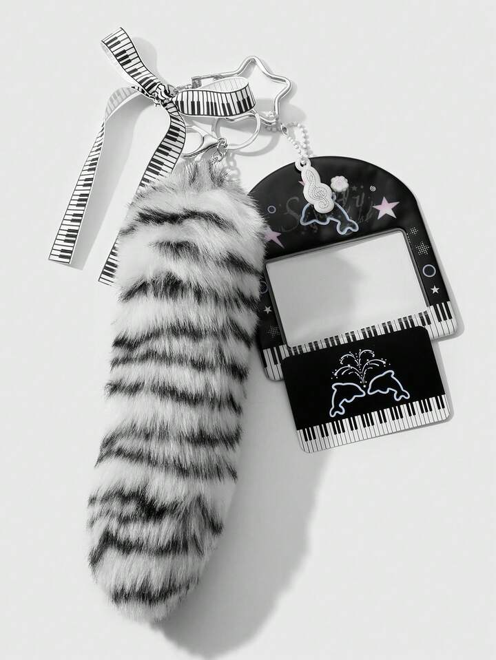 Grunge Punk 1pc Y2K Retro Cute Minimalist Versatile Gradient Plush Animal Faux Tail, Musical Element Piano Keys Ribbon Bow Horizontal PVC Music Note Dolphin Star Glossy Card Holder, DIY Keychain Bag Charm, Suitable For Women, Daily Wear, Holiday Gift