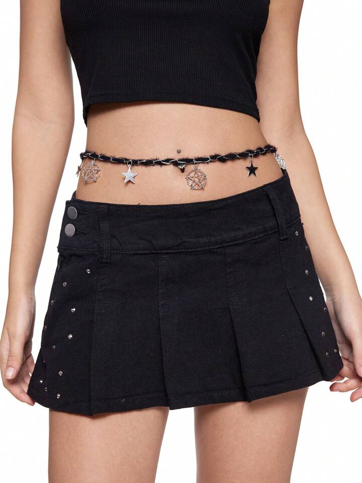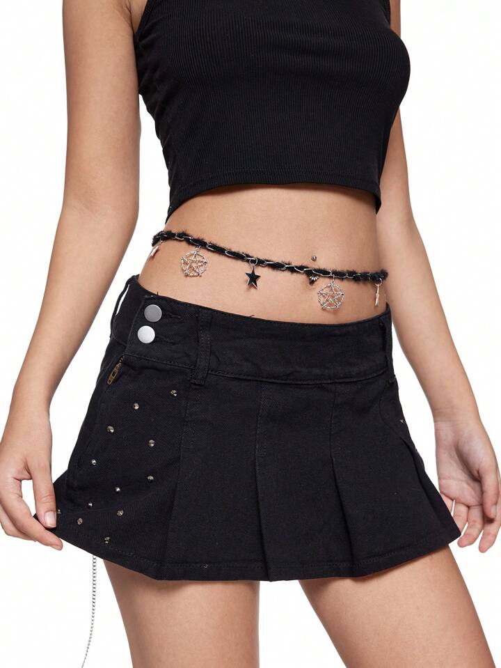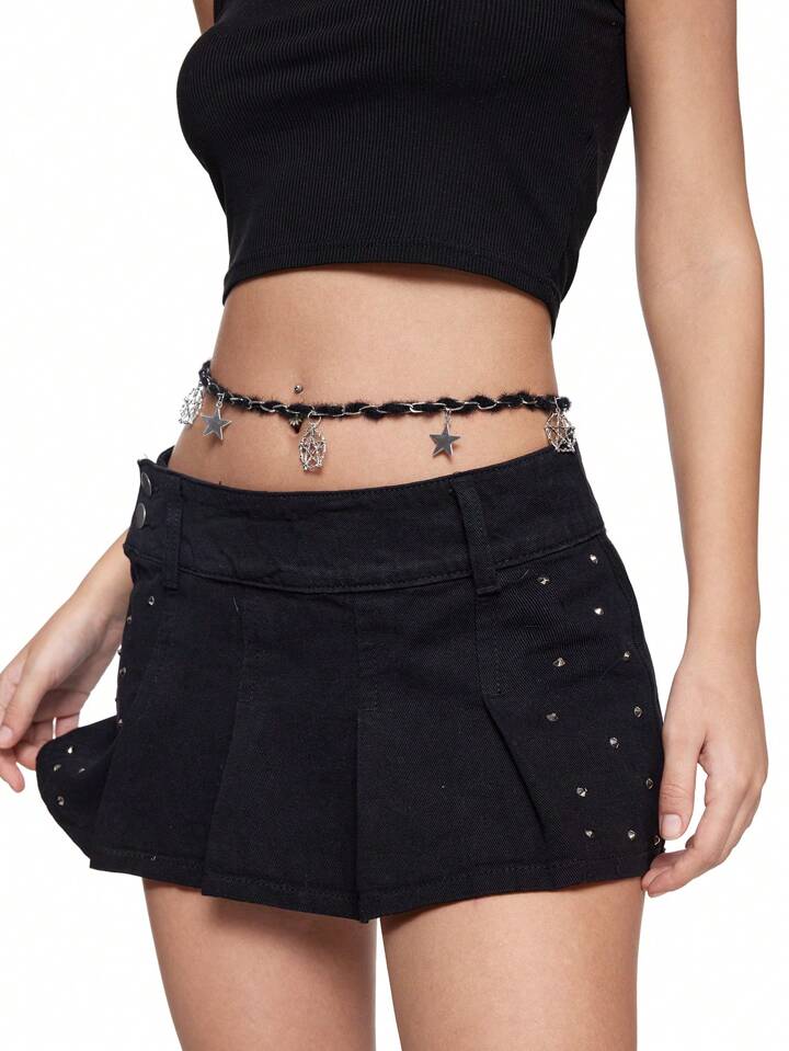 Grunge Punk 1pc Y2k Style Gothic Chain Hollow Black Plush Thorn Star Pendant Waist Chain, Suitable For Women & Girls Daily Wear, Holiday Gift