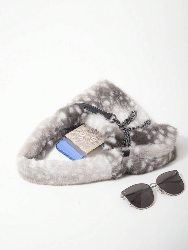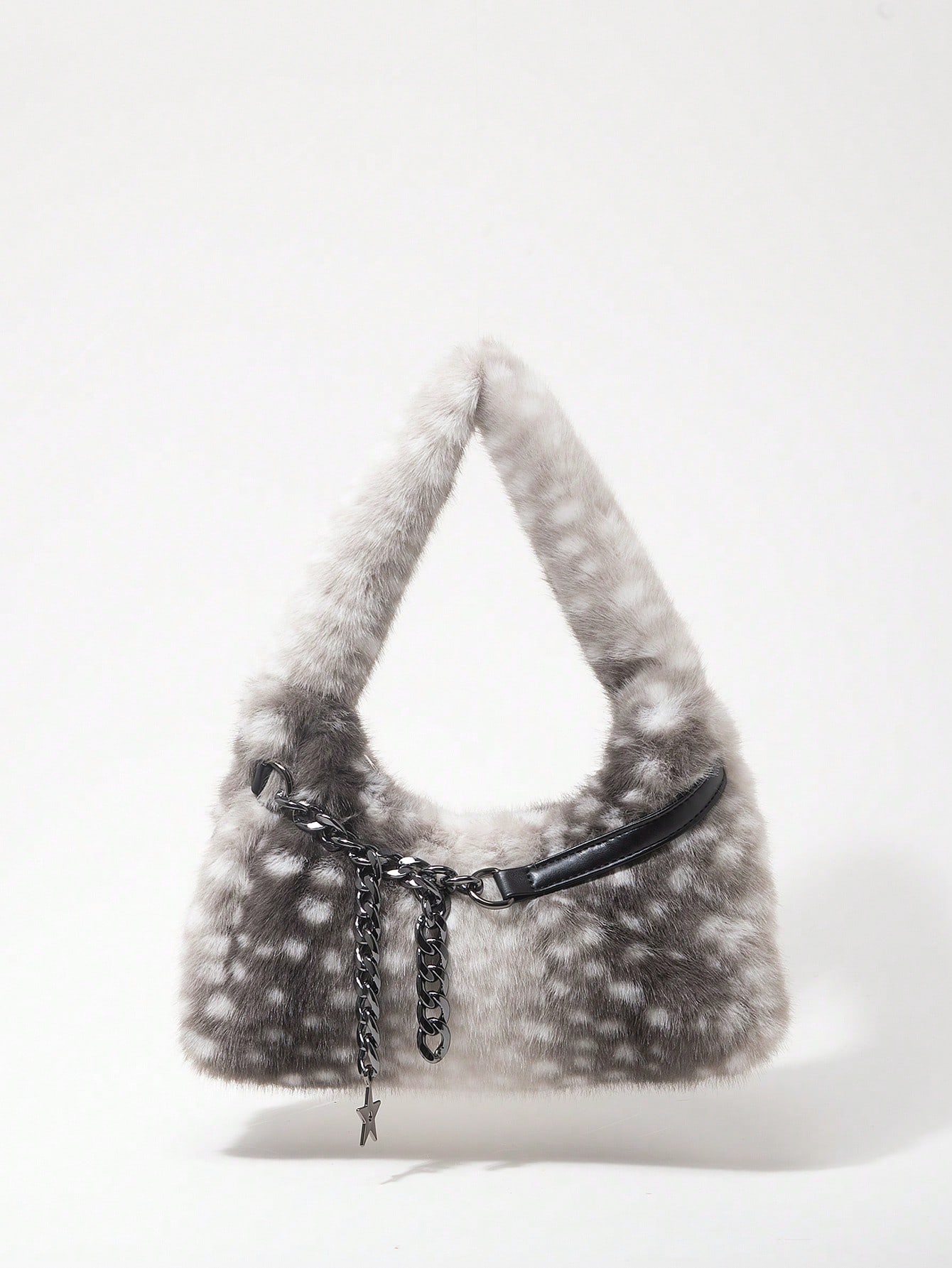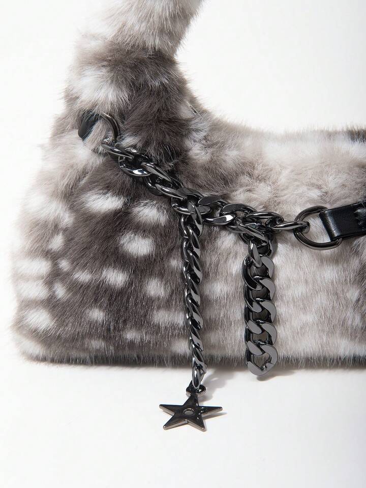 Grunge Punk 2000s Style Women Shoulder Bags,Punk Rivet Biker Bags,Fur Purse ,Autumn & Winter Wallets, Hobo Handbag(Random Pattern)