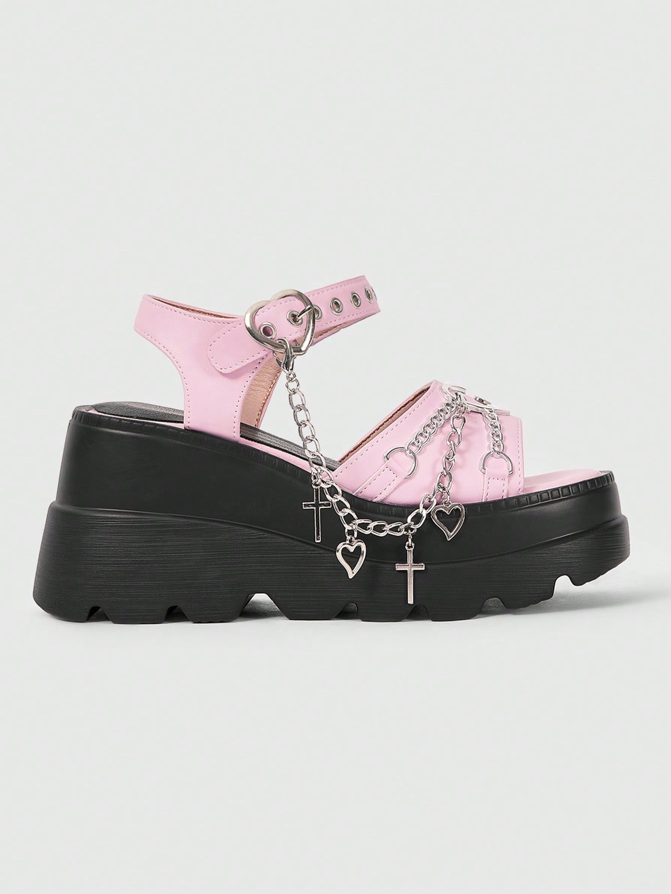 Grunge Punk 2025 New Gothic Outdoor Casual Chain Decor Platform Thick Sole Sandals, Summer