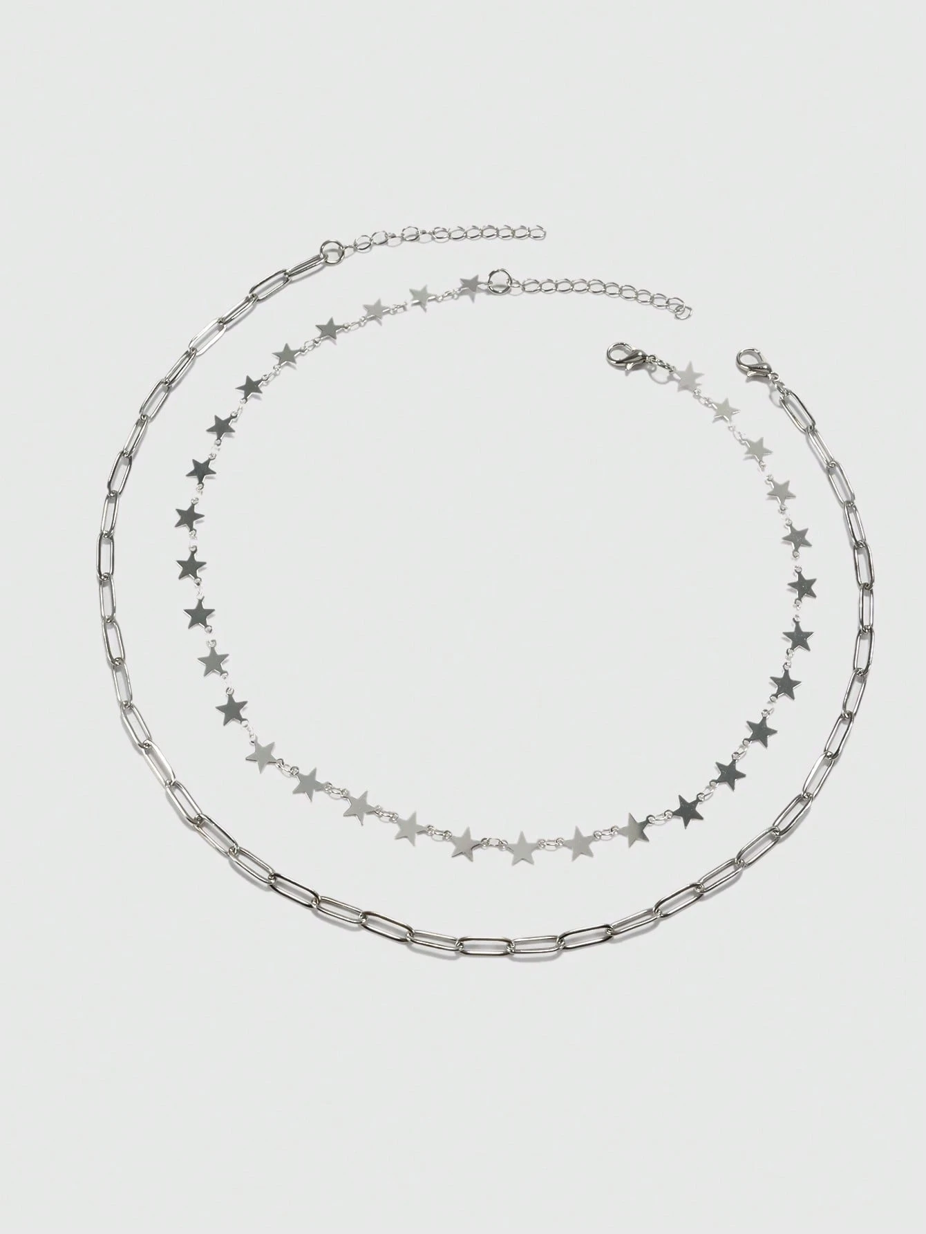 Grunge Punk 2pcs Star Shaped Decor Necklace