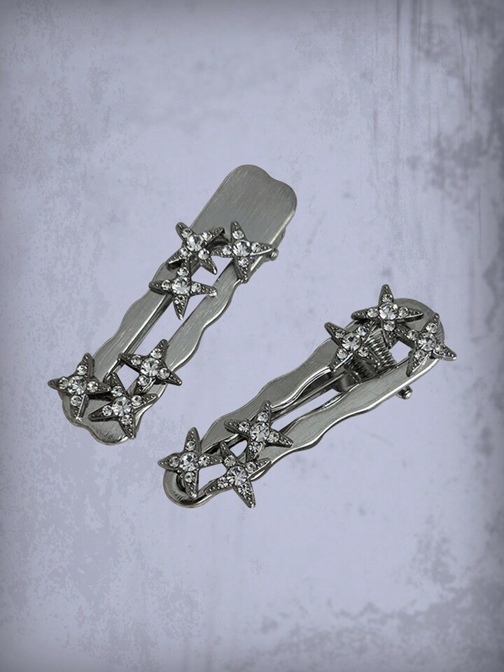 Grunge Punk 2pcs Women Star Rhinestone Decor Hair Clip