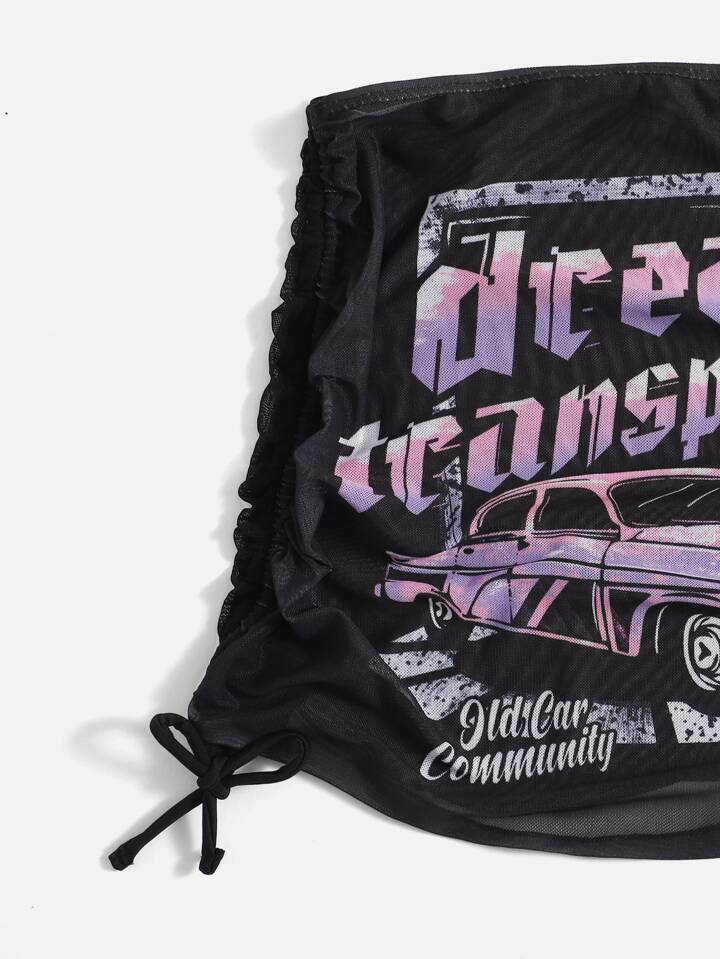 Grunge Punk 3packs Car Print Bikini With Beach Skirt