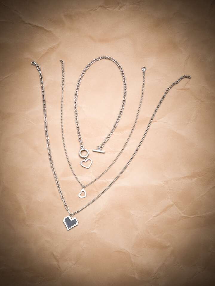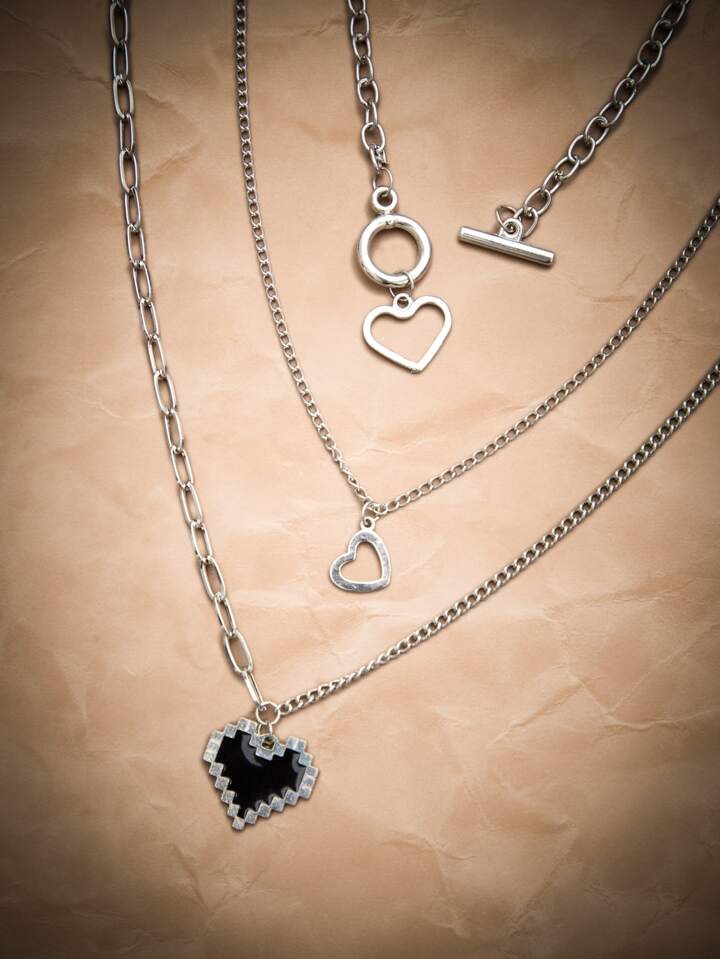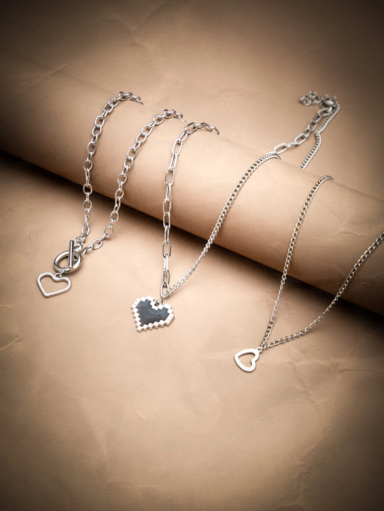 Grunge Punk 3pcs Heart Decor Chain Necklace