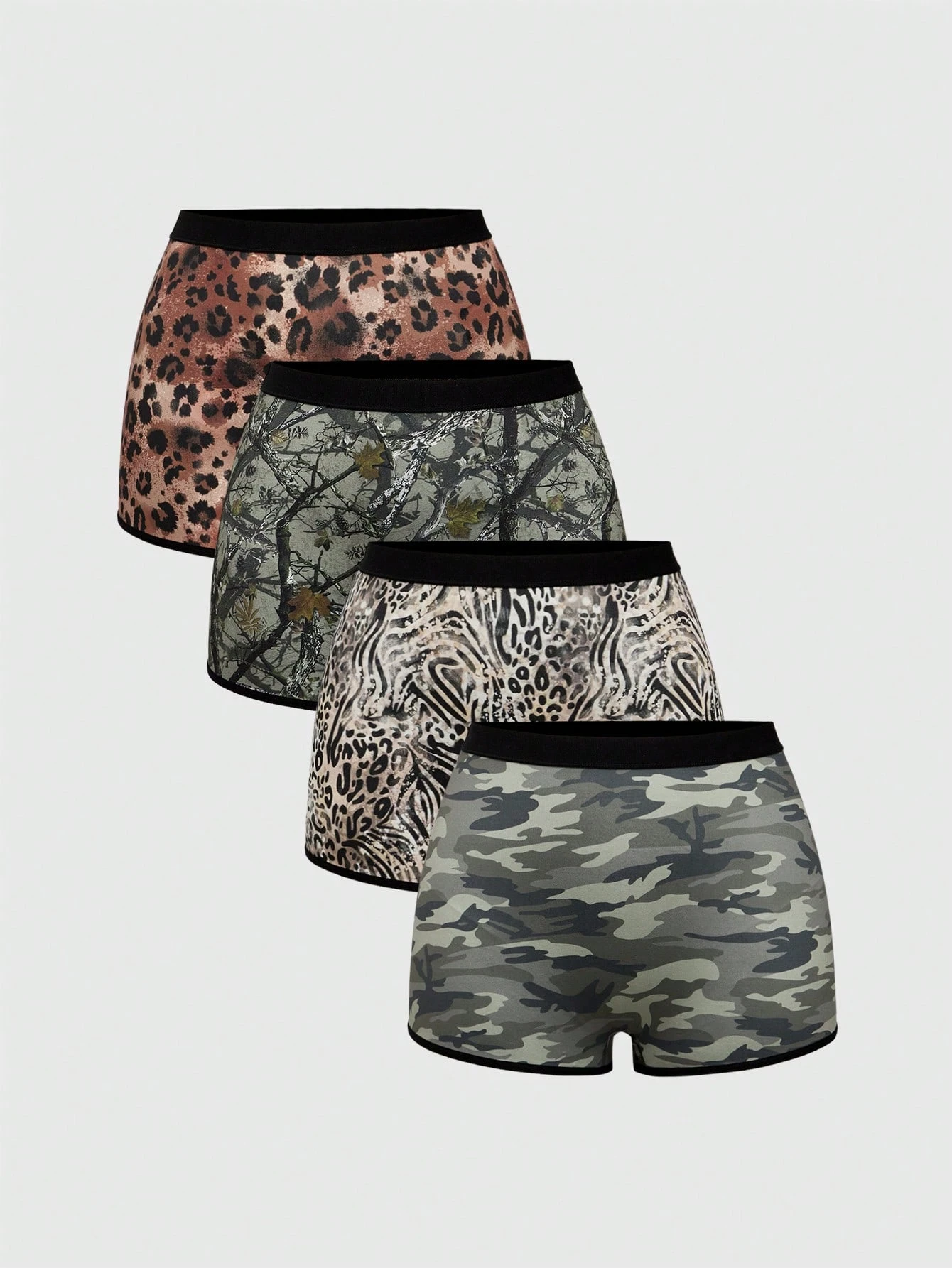 Grunge Punk 4pcs Assorted Gothic, Polka Dot, Leopard Print, Camouflage, Leaf Pattern Punk Briefs