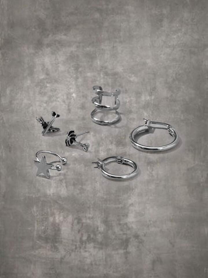 Grunge Punk 4pcs Plane Decor Earring & 2pcs Star Decor Ear Cuff