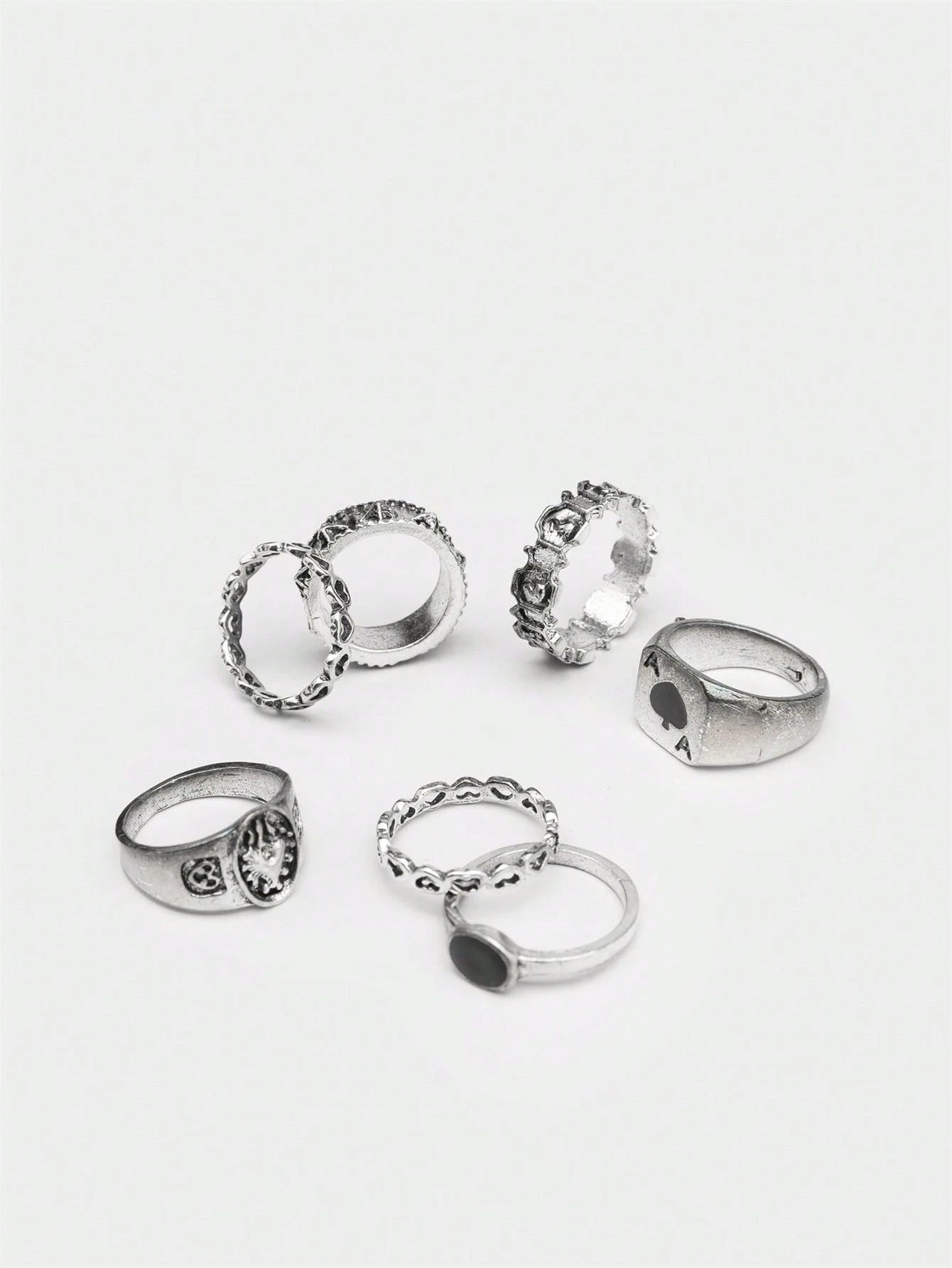 Grunge Punk 7pcs/set Dark Vintage Spades Heart Ring Set