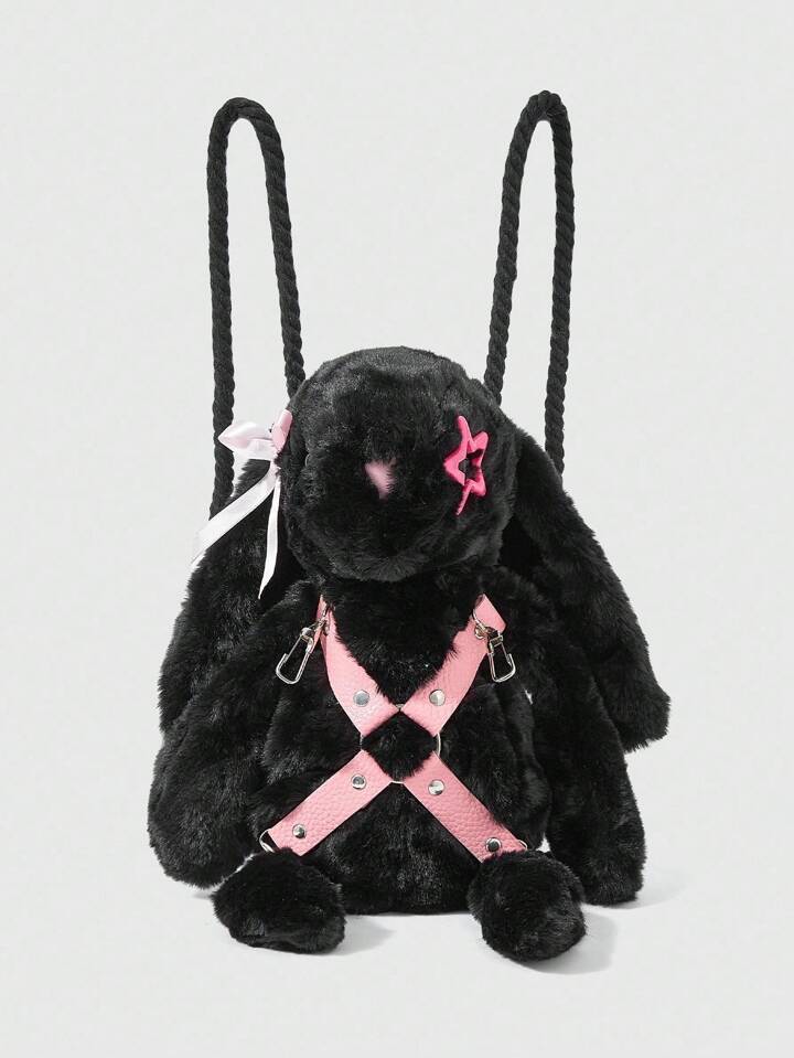 Grunge Punk Black Rabbit Shaped Cartoon Cute & Creative Fashion Backpack For Women