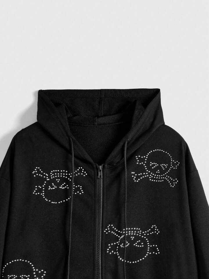 Grunge Punk Cartoon Rhinestone Zip Up Drawstring Hoodie