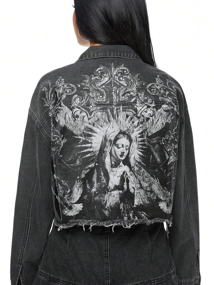 Grunge Punk Casual Street Style Our Lady Graphic Denim Jacket For Women
