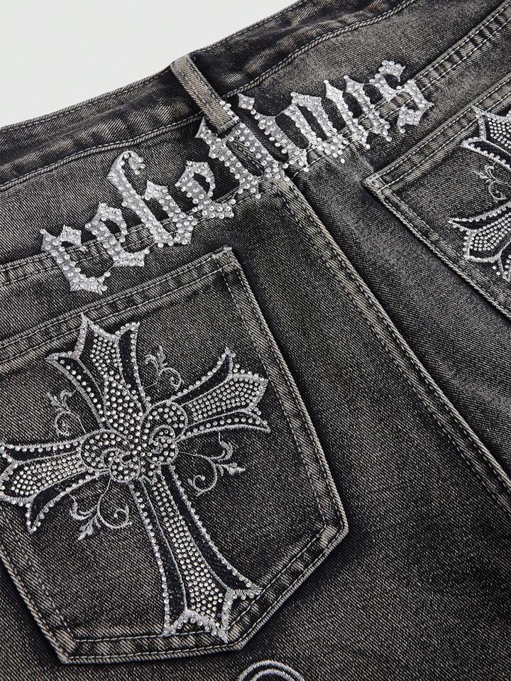 Grunge Punk Casual & Versatile Cross Embroidery & Rhinestone Decorated Denim Jeans