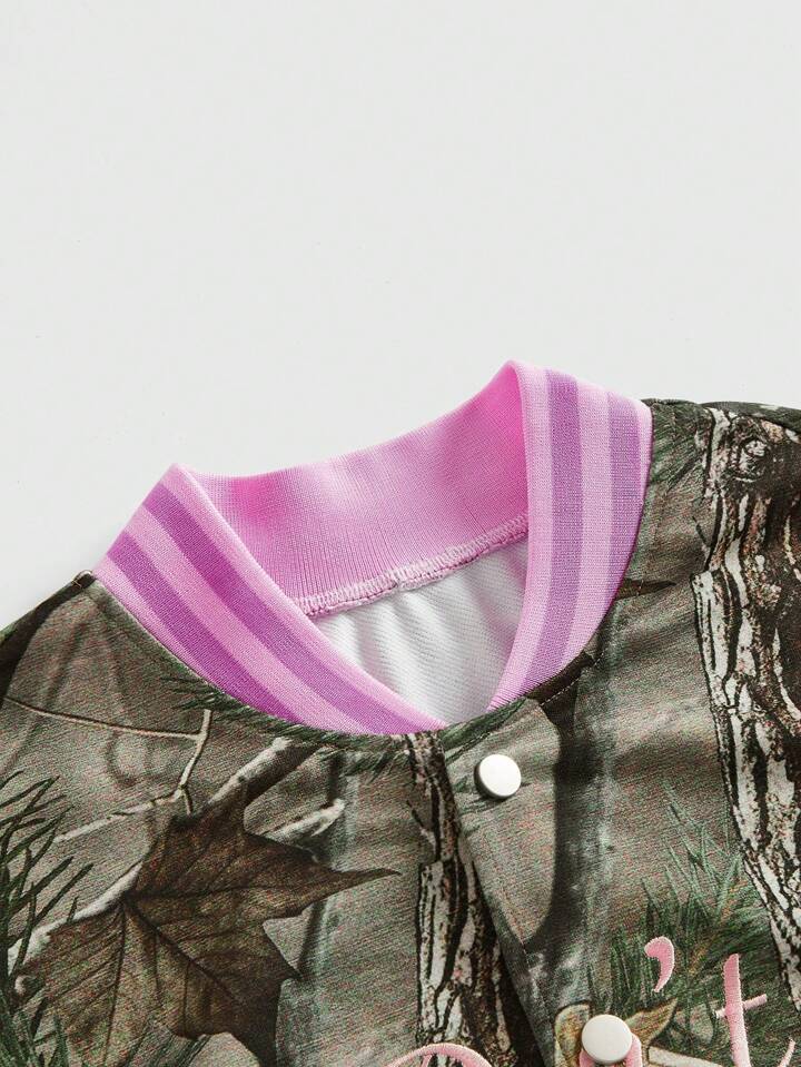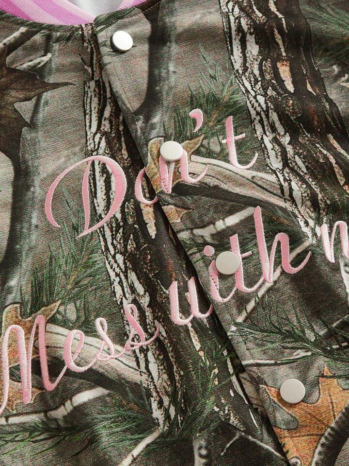 Grunge Punk Casual Versatile Y2K Style Faded Tree Branch All Over Print Color Block Letter Embroidery Loose Pocket Jacket For Women